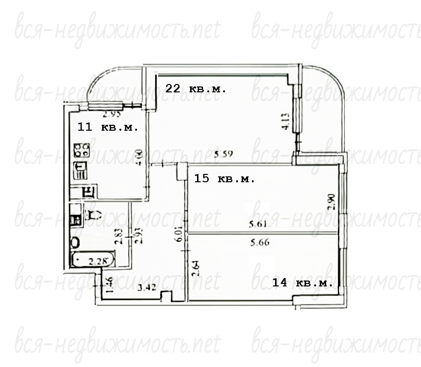 - с кухней 11 кв.м.;