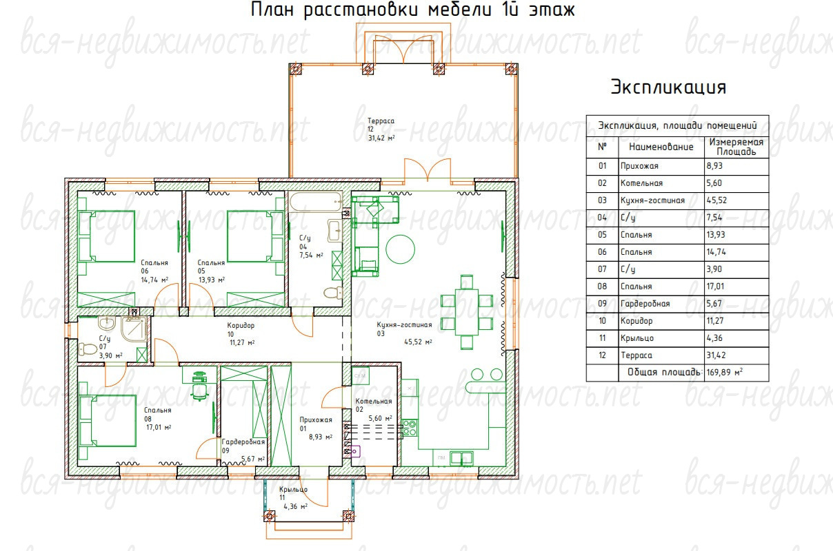 Площадь дома 168 кв. метров.