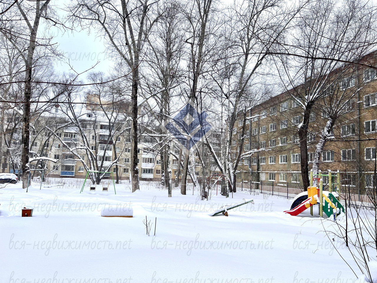 Вид из окон во двор и на улицу, удобно когда есть дети.