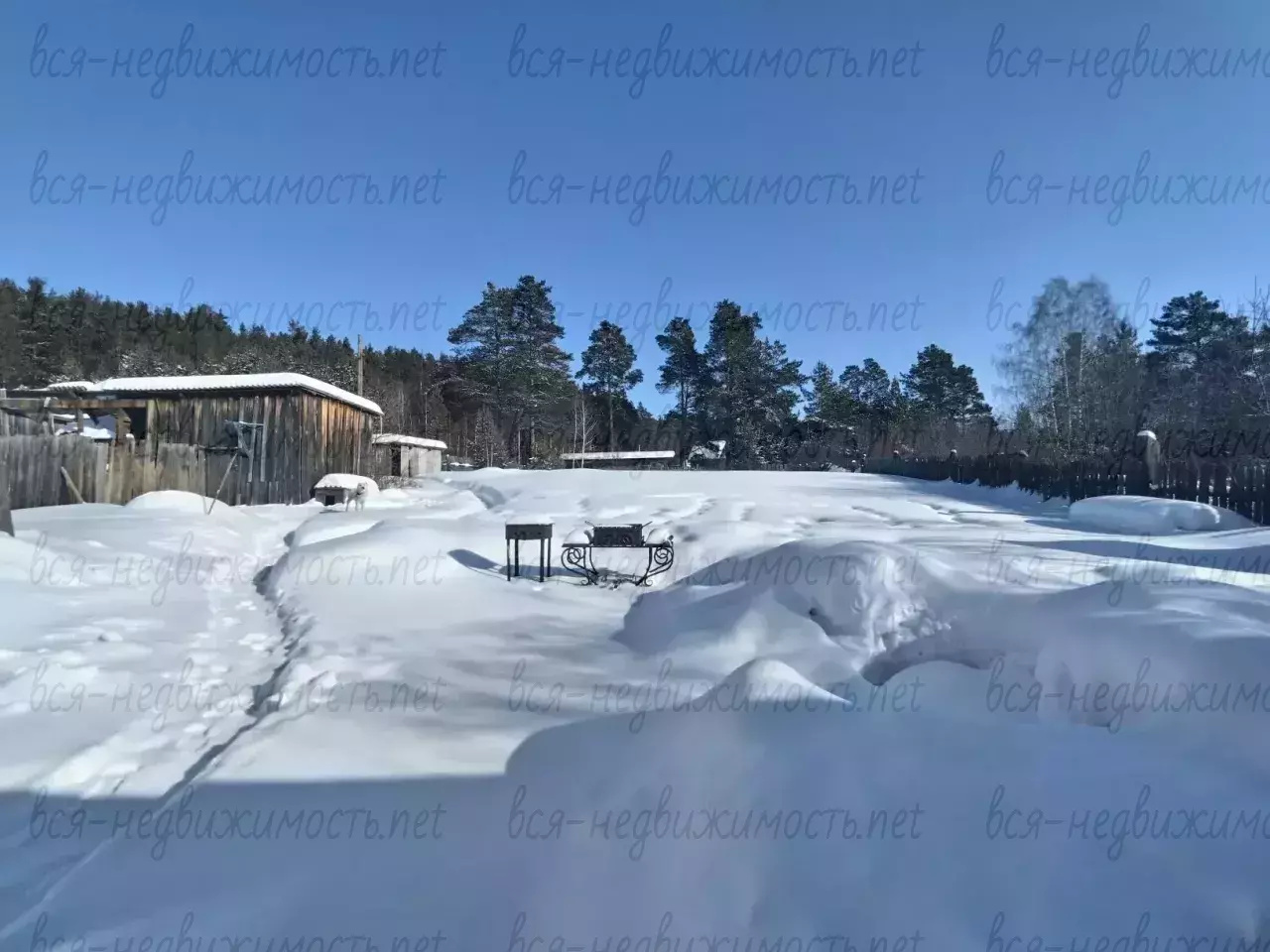 Участок на вершине и граничит с лесом. На участке баня и сарай. Участок прямоуголной правильной формы.