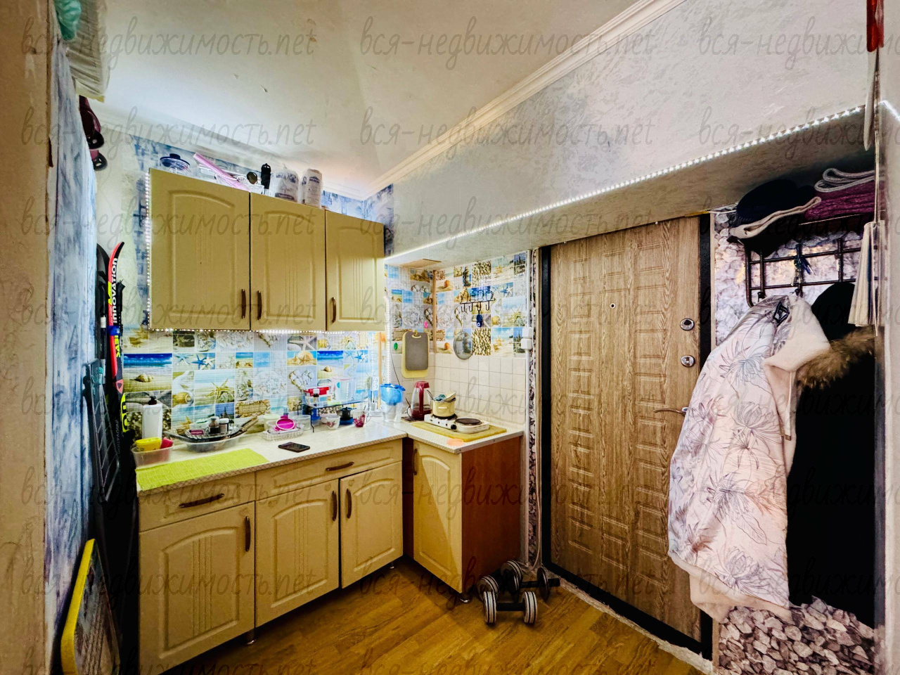 В комнате остается практически все для Вашего проживания: стенка, платяной шкаф кухонный гарнитур холодильник.