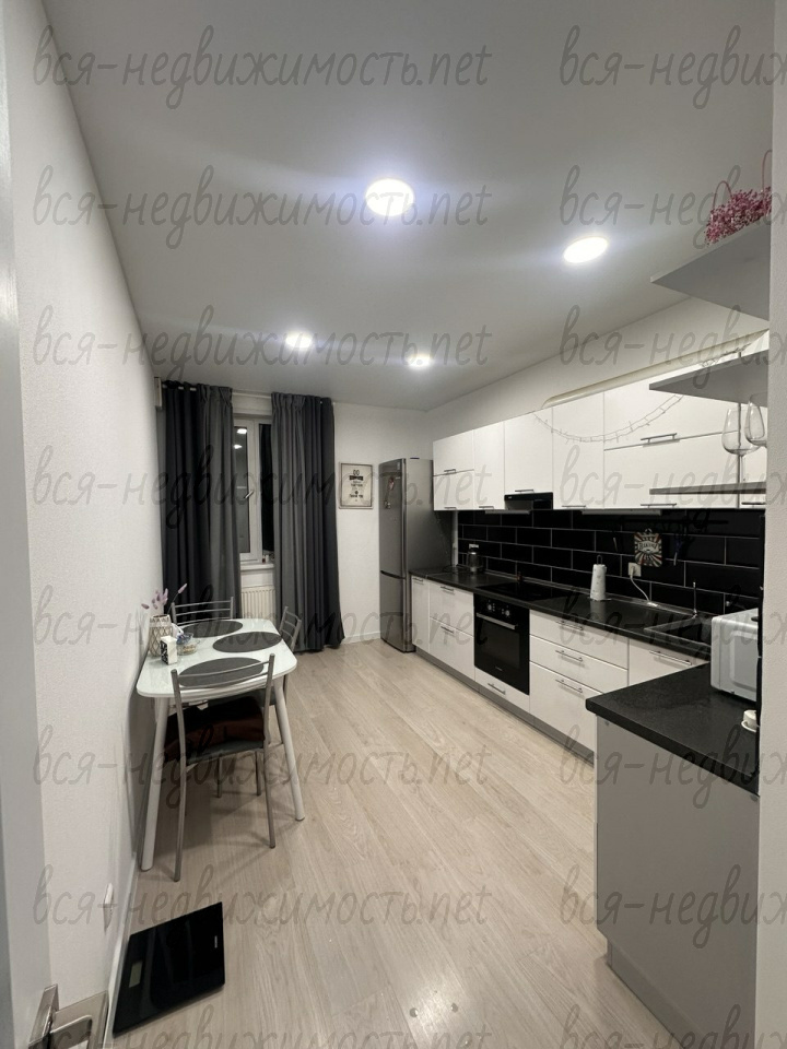 Полностью укомплектована для комфортного проживания: мебель, техника остаются. Имеется гардеробная и лоджия с панорамным остеклением.