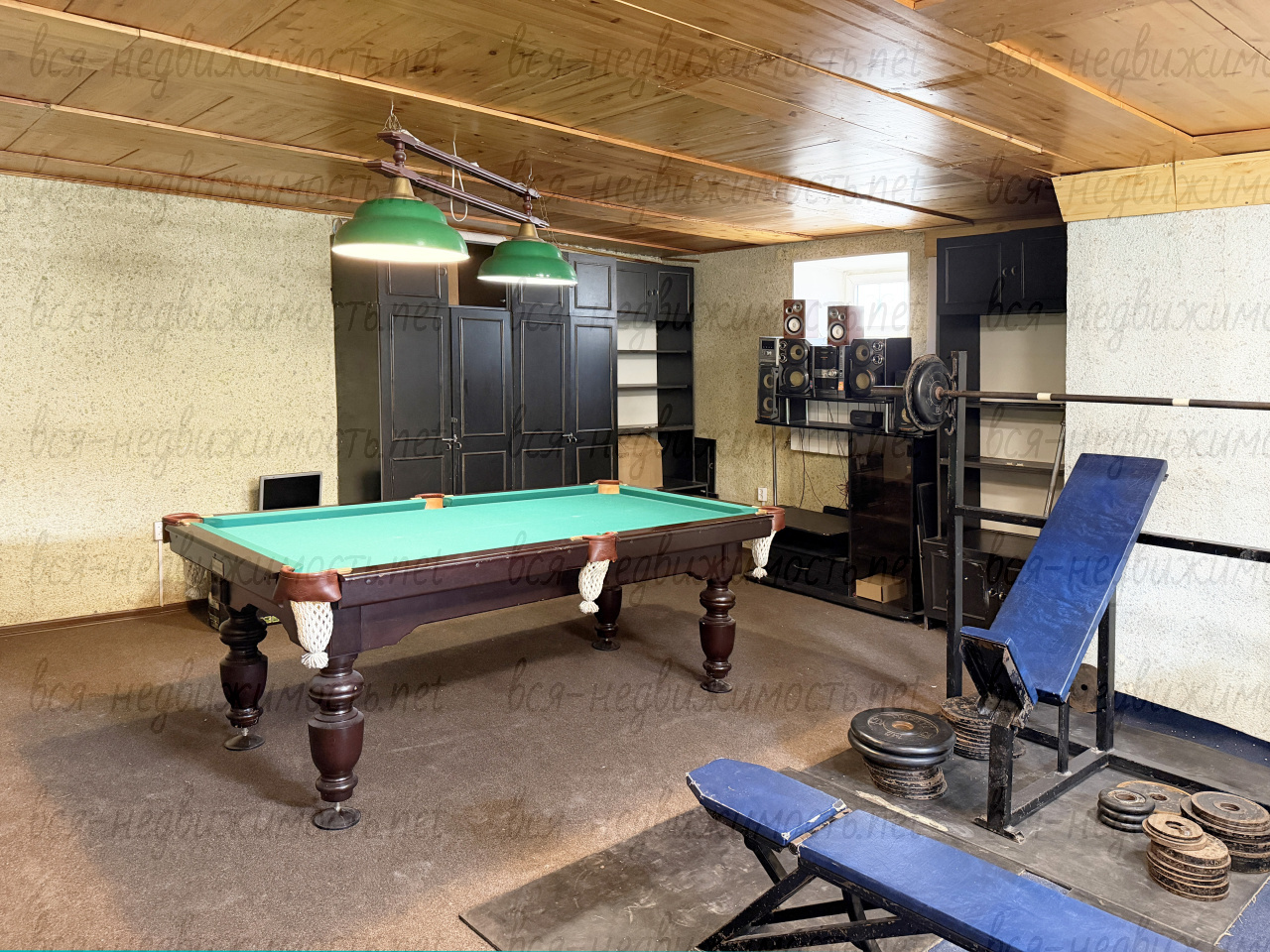В цокольном этаже находится сауна, бильярдная комната, тренажерный зал, котельная, овощехранилище, кладовые.