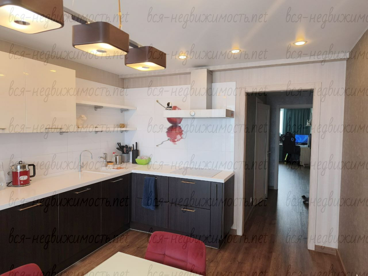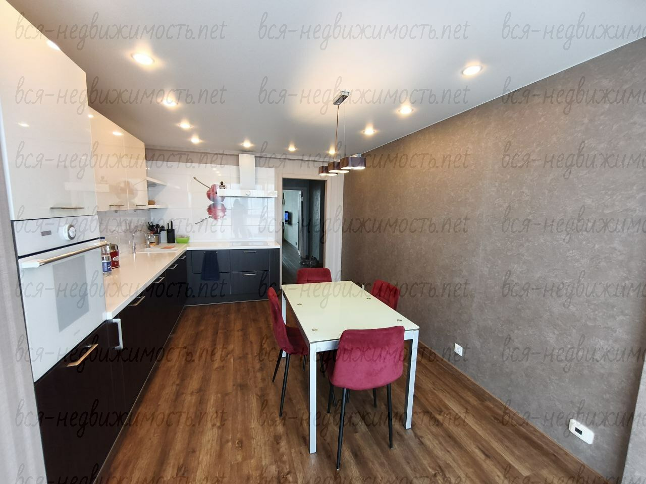 Кухня гостинная 17 кв м, три изолированные комнаты 20, 17, 11 кв.м, одна из комнат со своим сан узлом и гардеробной.