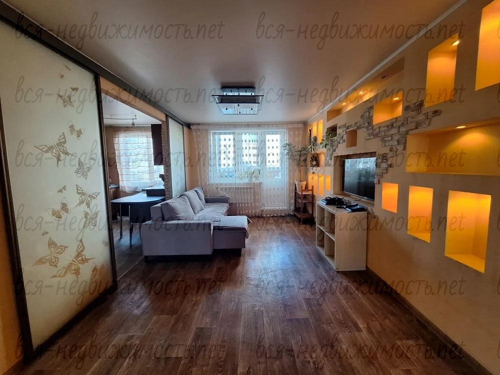 Квартира площадью 64,5м2. располагается на 4 этаже 10 этажного панельного дома с выходом окон на северо-восточную и юго-западную сторону. В квартире выполнен интересный дизайнерский ремонт с установкой встроенной качественной мебели.