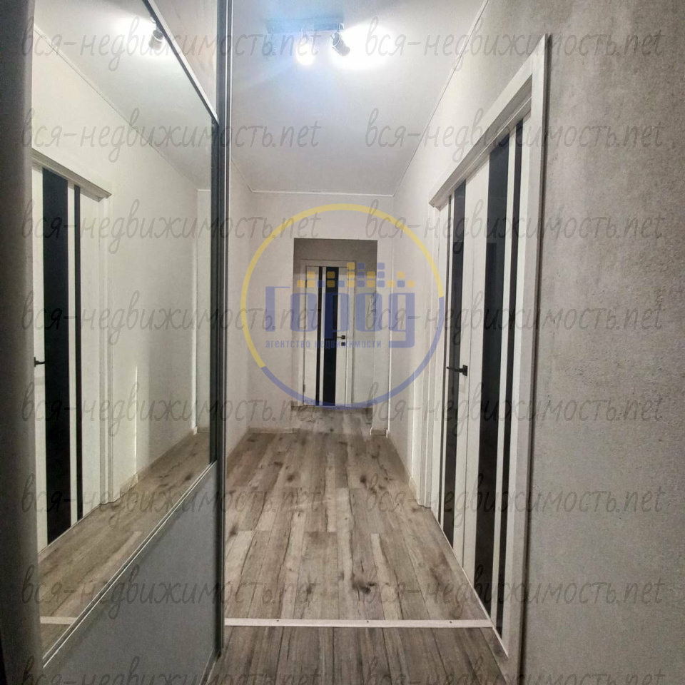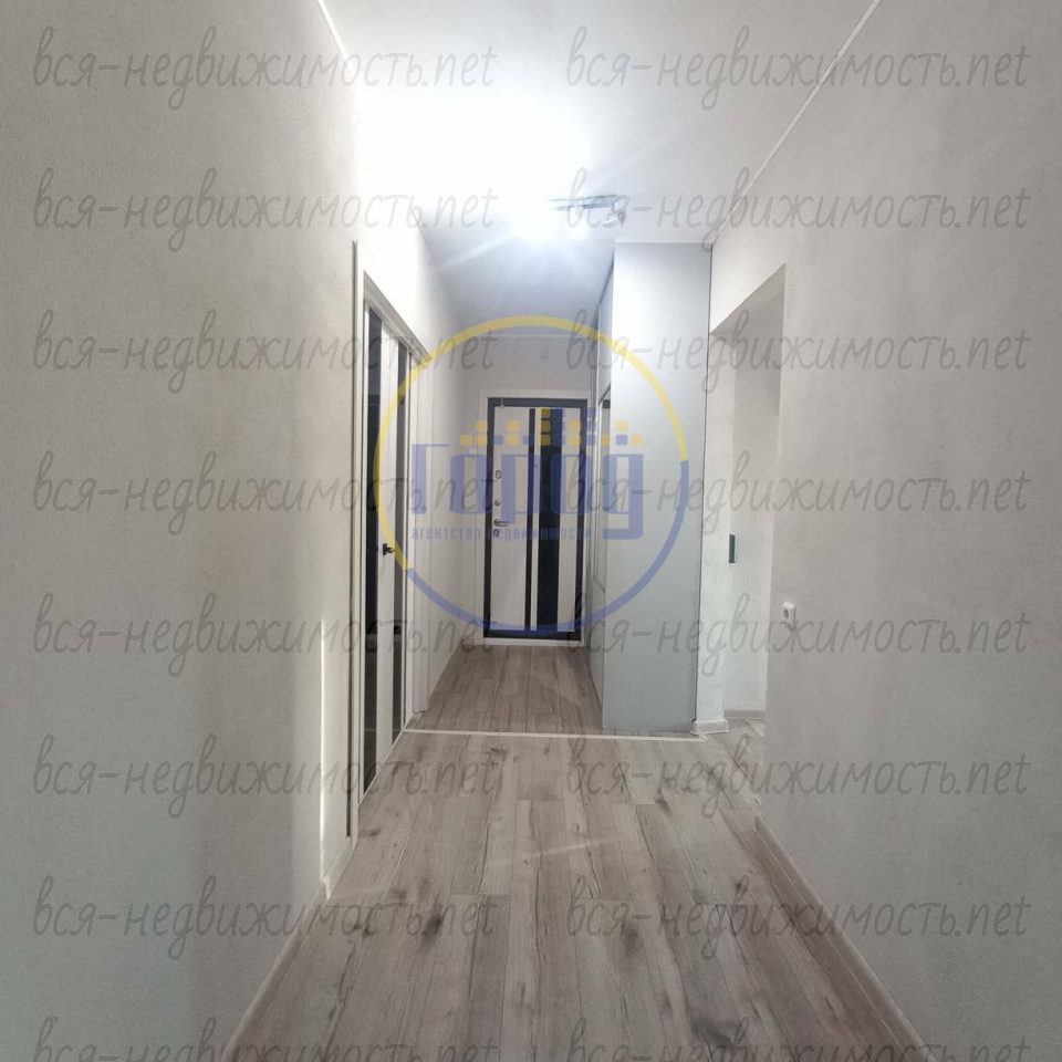 В зале и на кухне напольное покрытие выполнено из кварцвинила, в остальных комнатах – ламинат 33 класса с повышенной влагостойкостью. В прихожей уложен керамогранит. Установлены межкомнатные двери высокого качества. Входная дверь выполнена в едином стиле с межкомнатными. Отдельная гардеробная комната оборудована удобными системами хранения, позволяющими легко разместить все необходимые вещи.