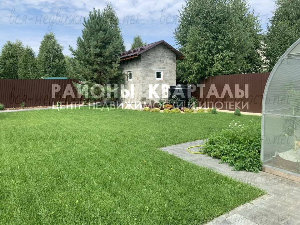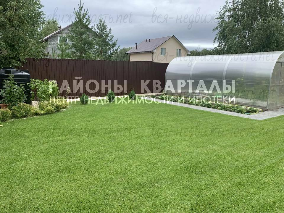 Участок правильной формы, на возвышенности сухой и ровный. На участке высажены декоративные растения, имеется теплица и помещение для хранения инвентаря.