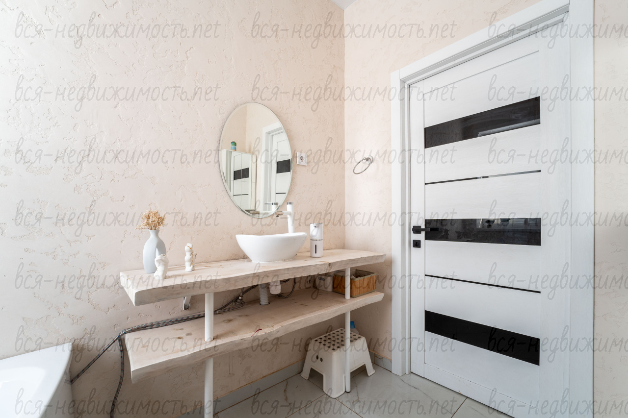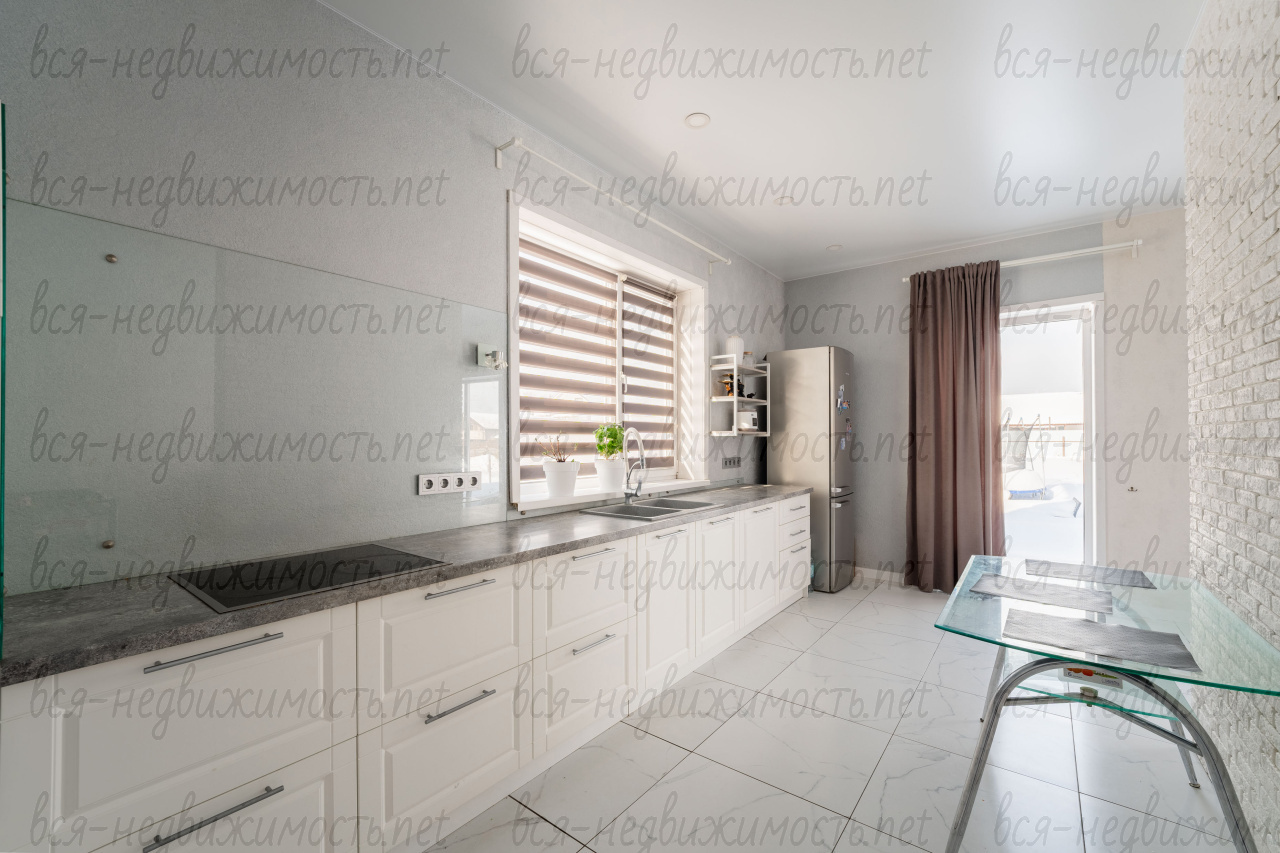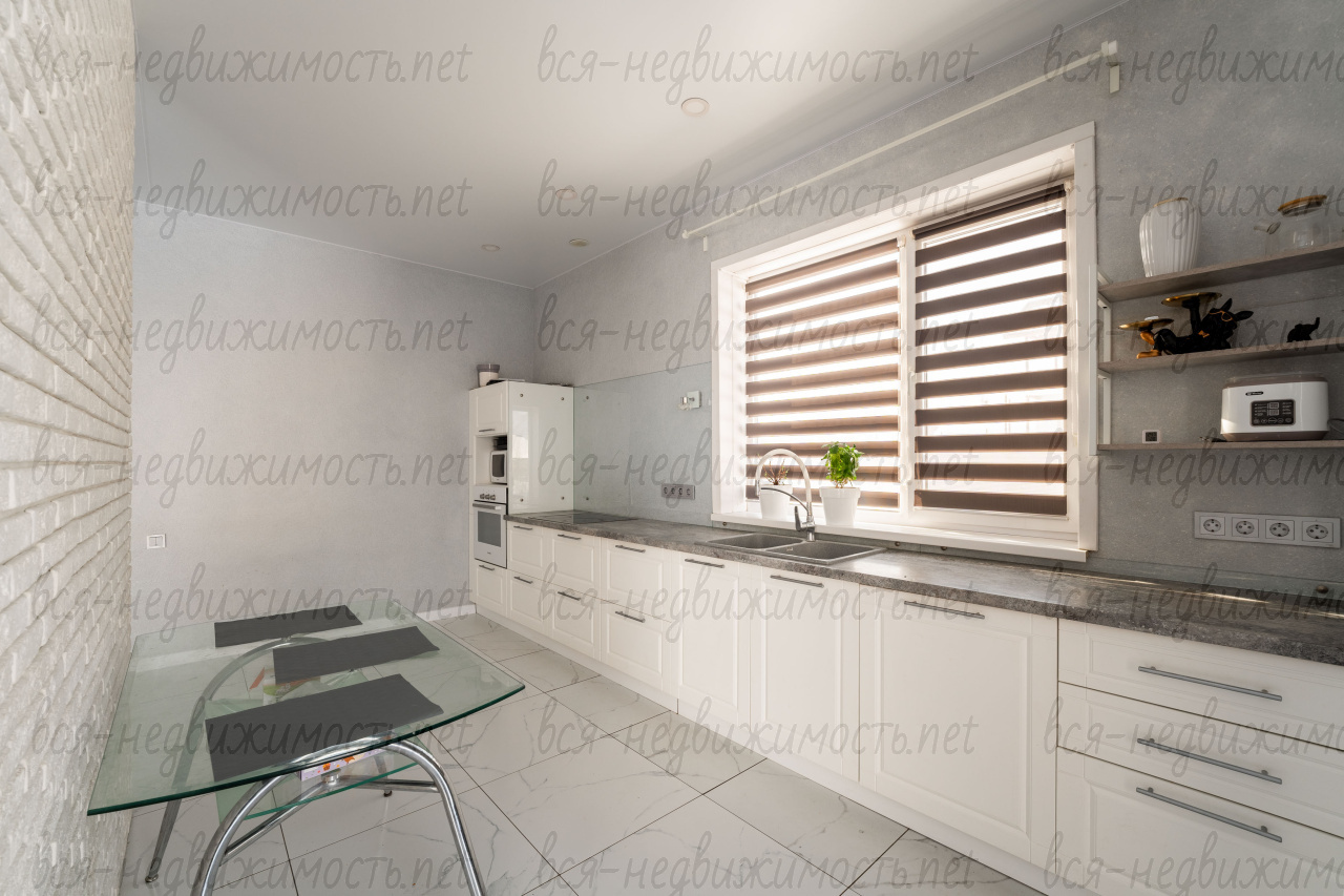 Внутренняя отделка выполнена качественными материалами. Фасады кухонного гарнитура из натурального дерева, встроенная бытовая техника Воsсh