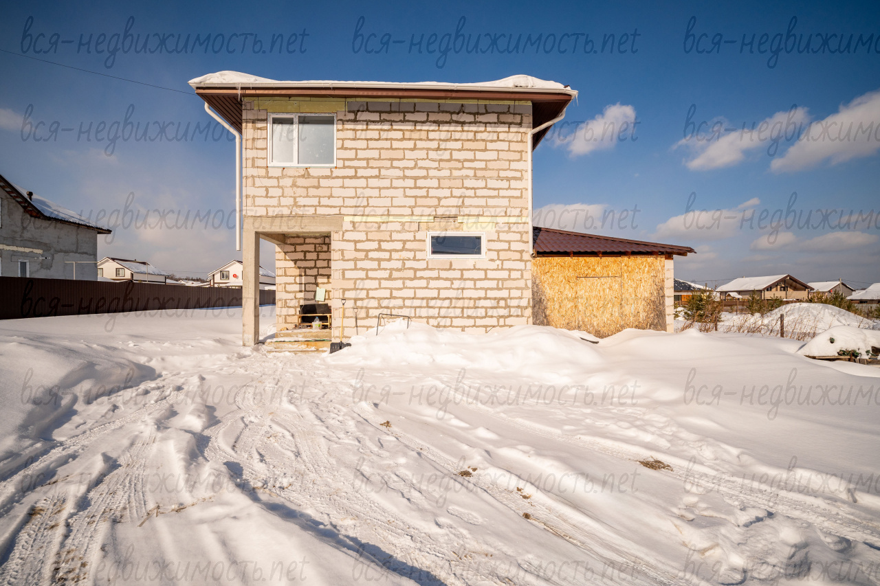 У дома не сделана отмостка и внешняя отделка, забор с 2 сторон. Есть гараж для одного автомобиля