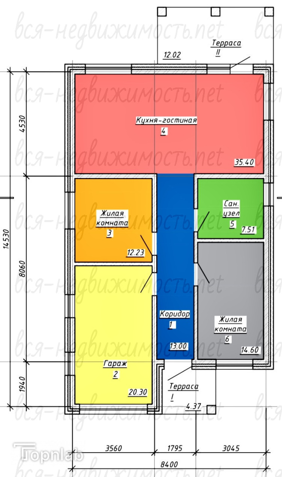 Удобная планировка с гаражом, с большой кухней-гостиной и террасой.
