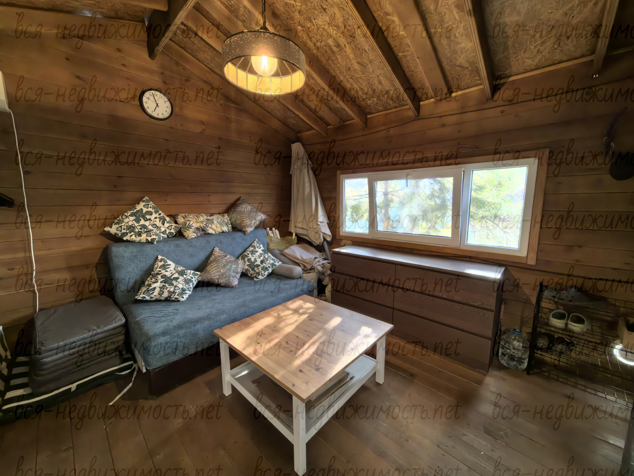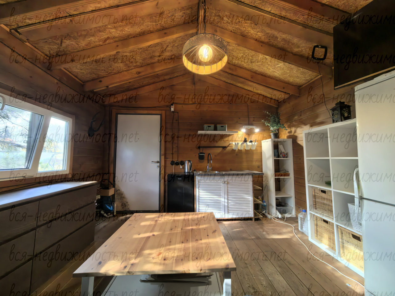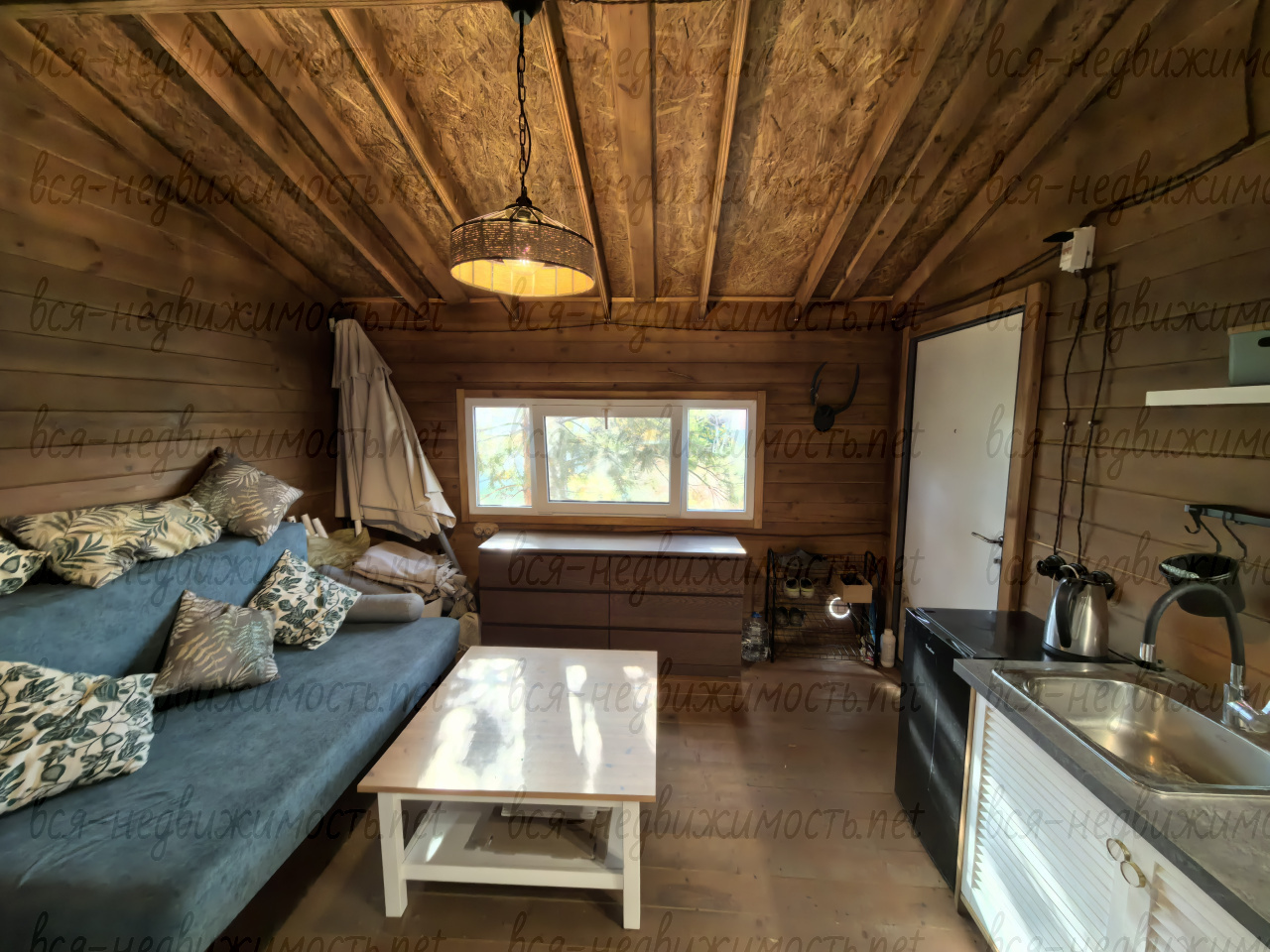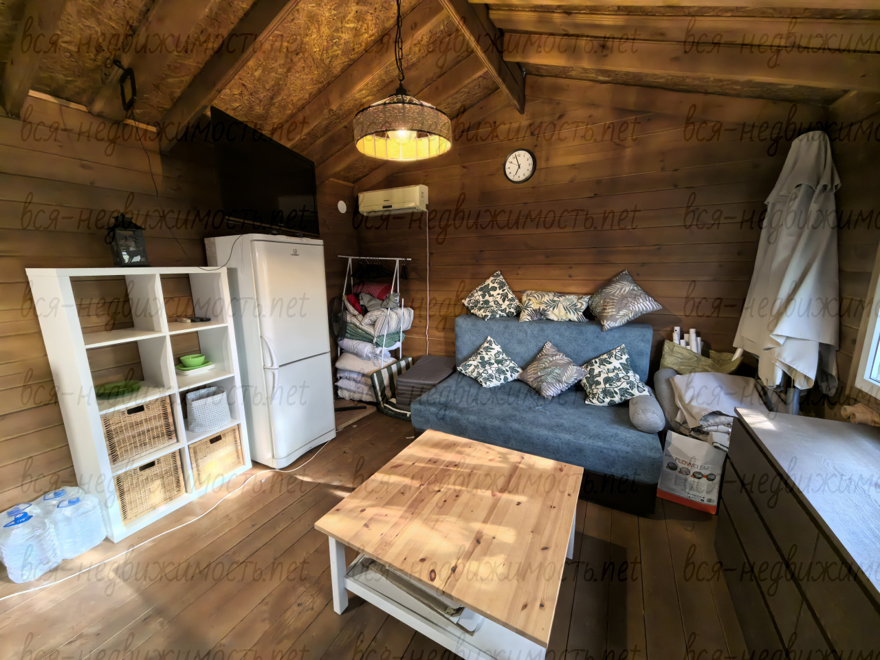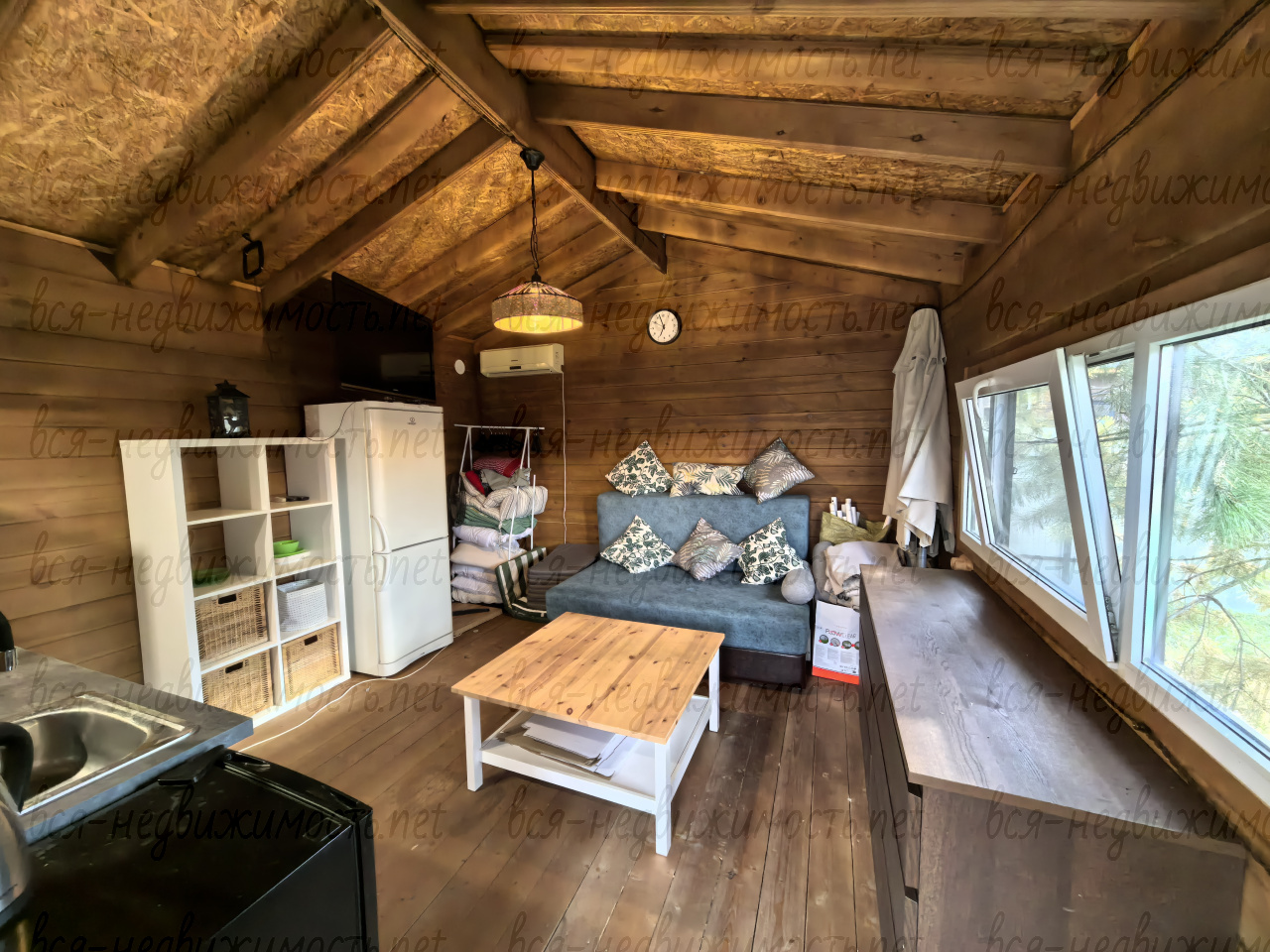 В доме остается вся мебель и техника (телевизор, холодильник, кондиционер, диван, стол, стеллажи для посуды, водонагреватель, комод, чайник, часть посуды).