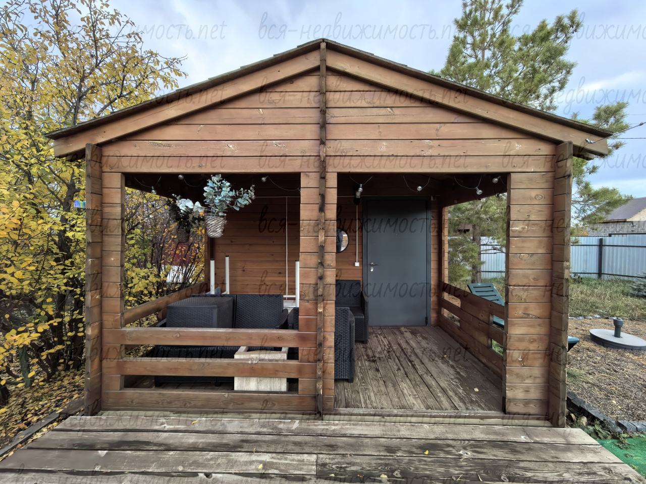 • Зона отдыха на участке: Бассейн, беседка, зонт пляжный, комплект уличной мебели из искусственного ротанга, качели.