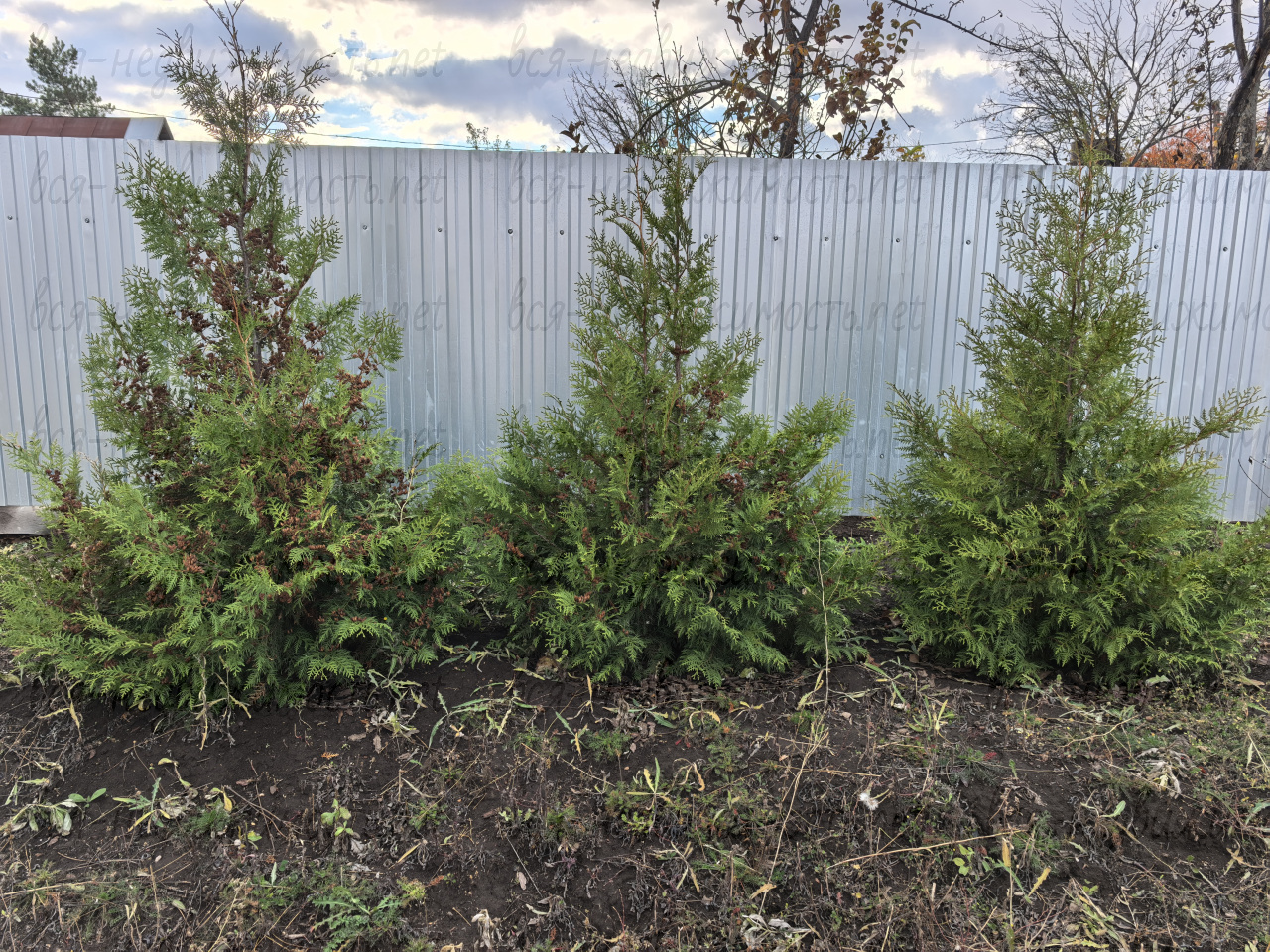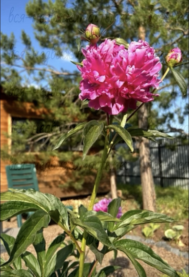 • Декоративные растения: туи, 2 сосны, голубая ель, можжевельник, пионы, гортензия, хосты.