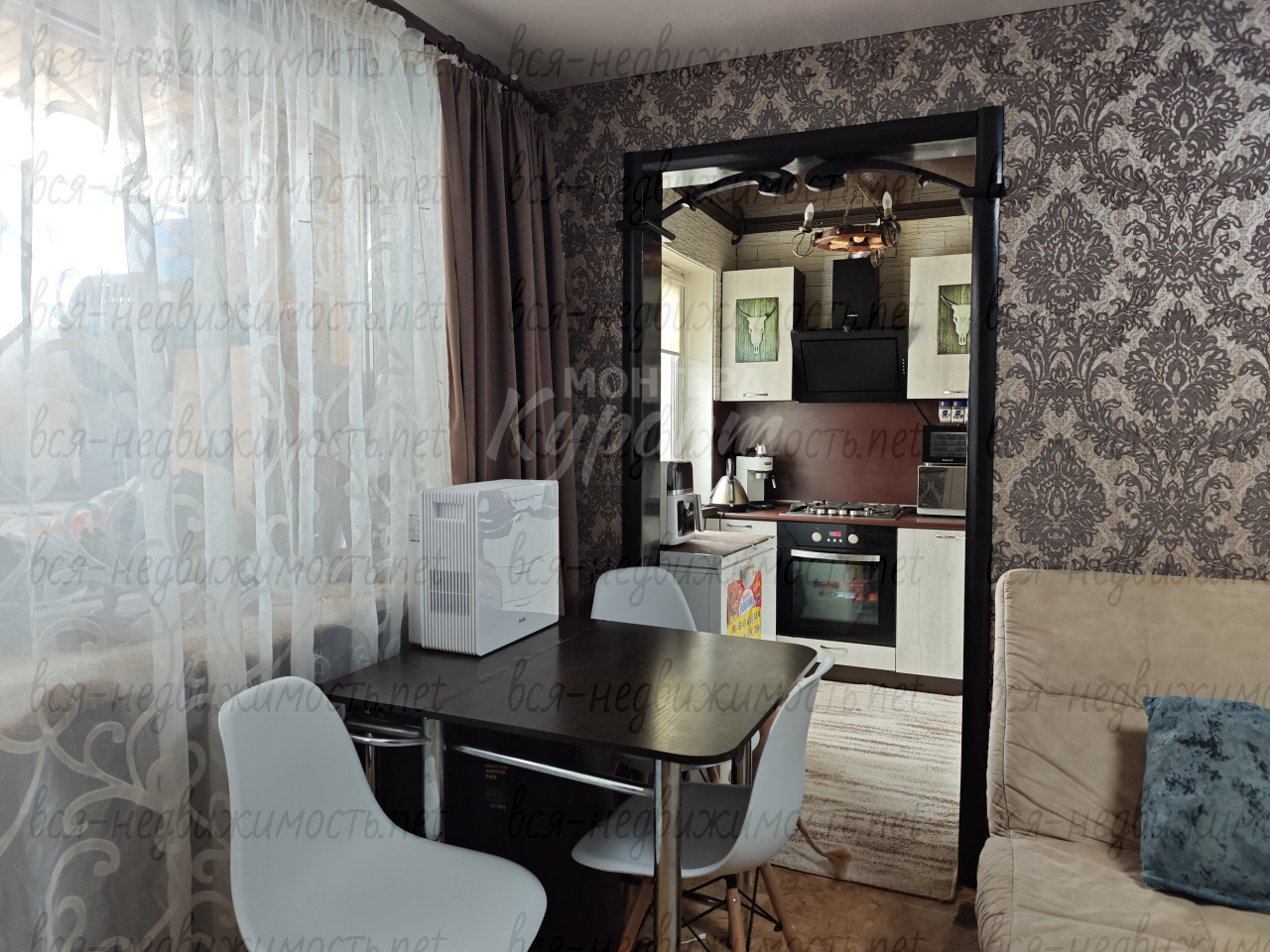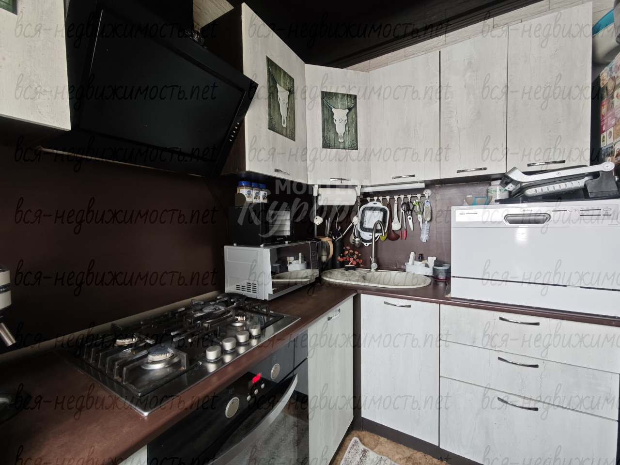 - Кухонный гарнитур, варочная поверхность, духовой шкаф.