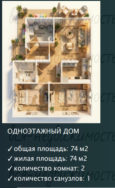 | Площадь: | 74 м2 |