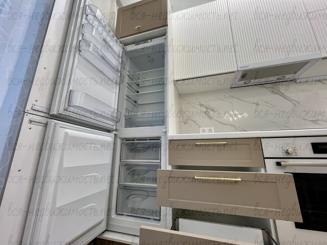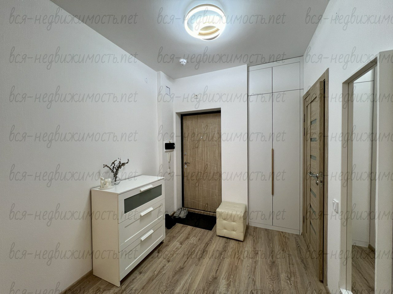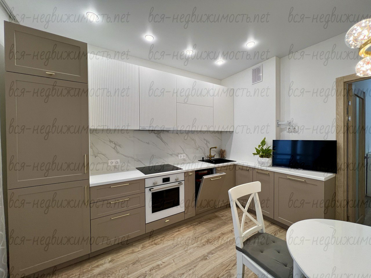 Из мебели остается: кухонный гарнитур со встроенной техникой: холодильник, варочная поверхность, духовой шкаф, вытяжка, микроволновая печь, посудомоечная машина, стол и стулья на кухне, встроенный шкаф – купе в комнате и в коридоре.
