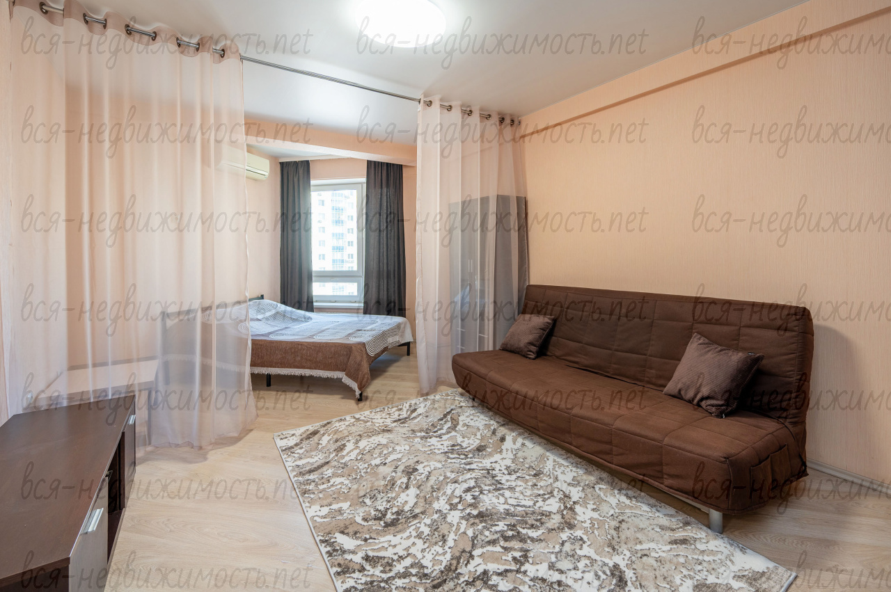 Квартира с функциональной планировкой: пространство грамотно зонировано — выделена спальная зона, что создаёт ощущение отдельной комнаты. Установлен кондиционер.