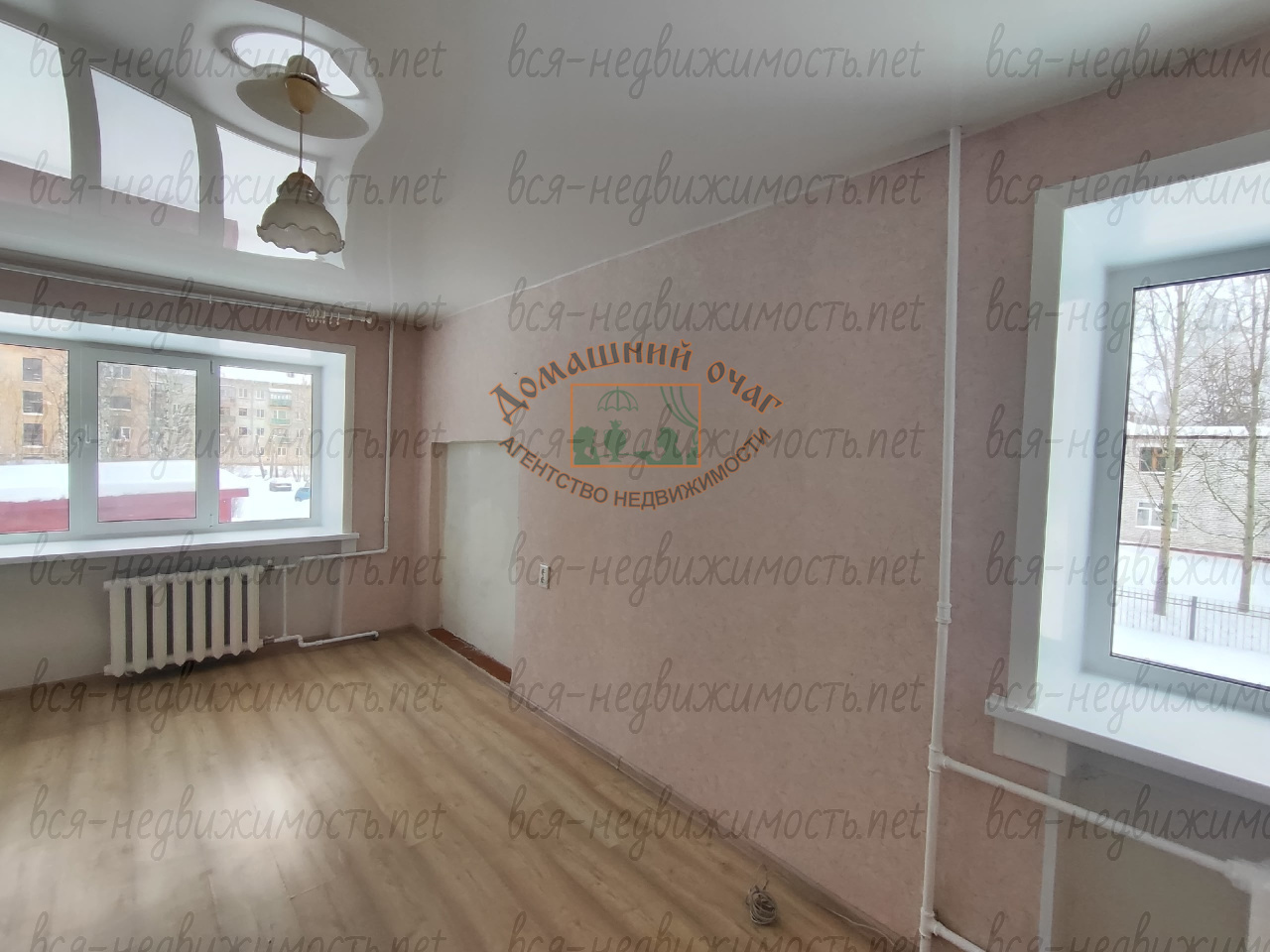 Общая площадь комнаты 17 кв.м с двумя окнами, очень удобно при зонировании.