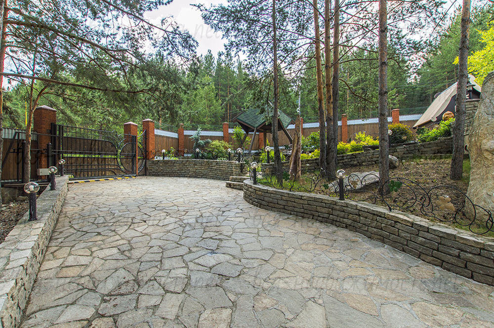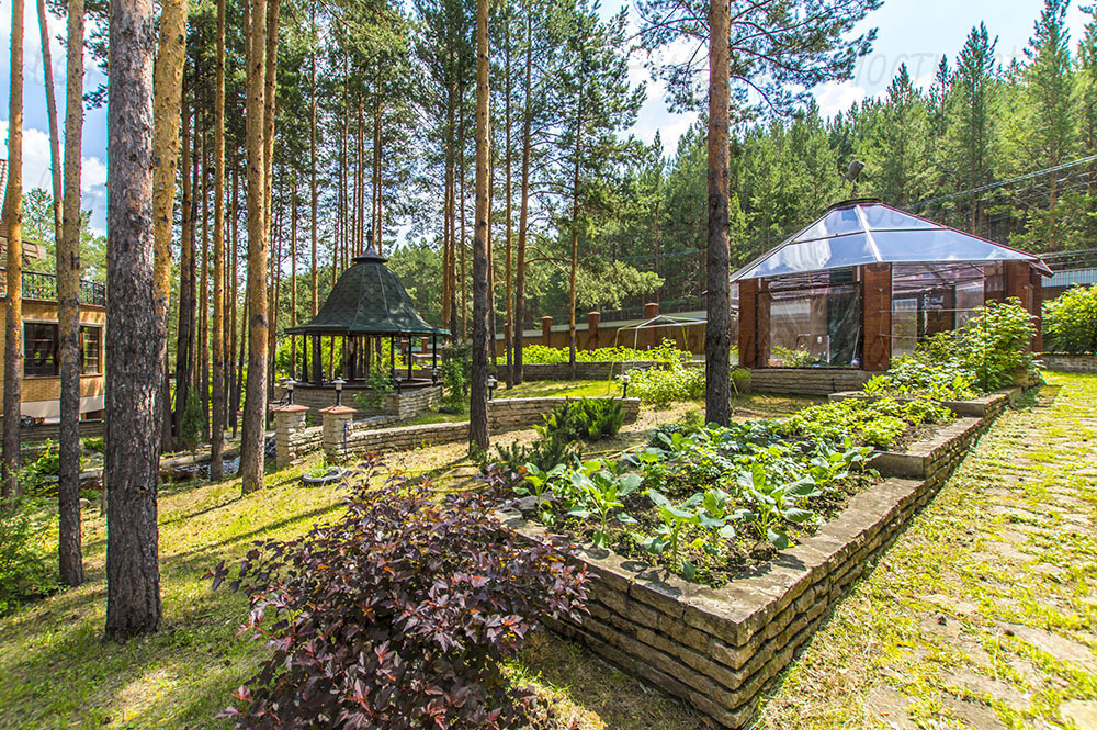 На участке с вековыми соснами и ландшафтным дизайном расположились: