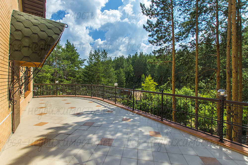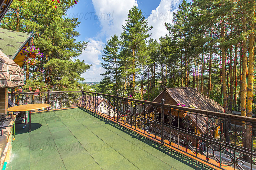 С террасы 3 этажа площадью 65 кв.м. красивый вид на участок и на лес.