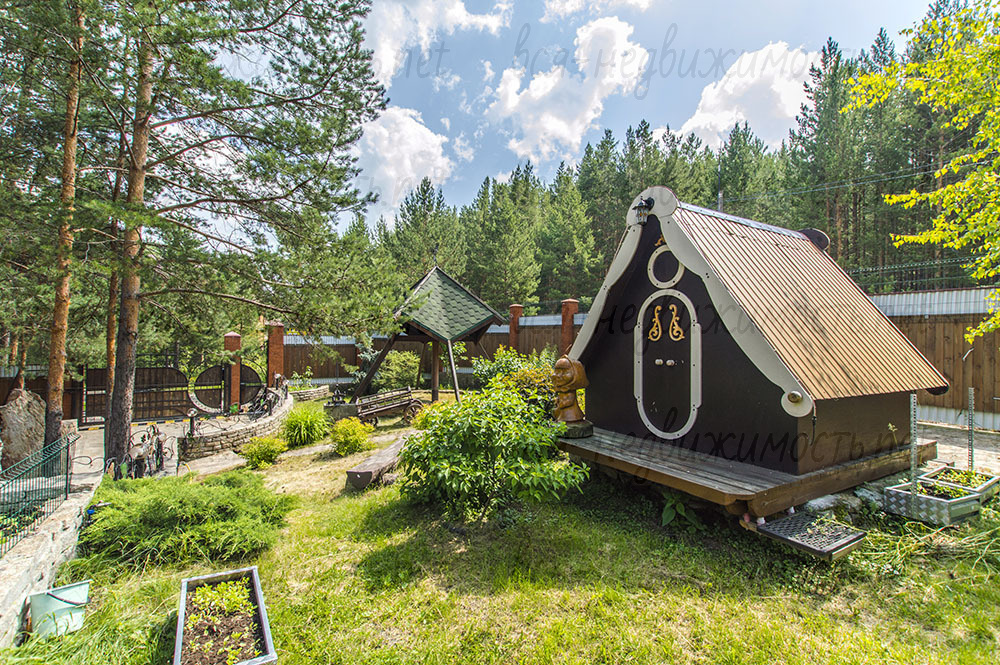 - небольшая зеленая полянка с детским домиком и зоной отдыха,