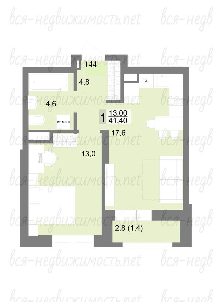 | Площадь: | 41 м2 |