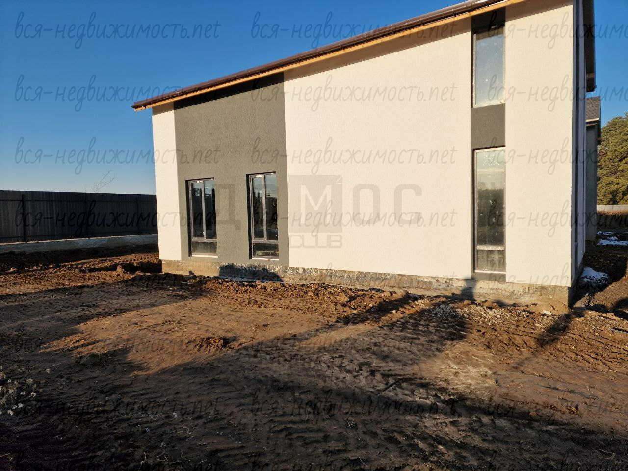 Дом построен в рамках освоения застройщиком смежных земельных участков общей площадью 1 Га, вдоль соснового леса. Всего, ведется строительство 8 индивидуальных жилых домов.