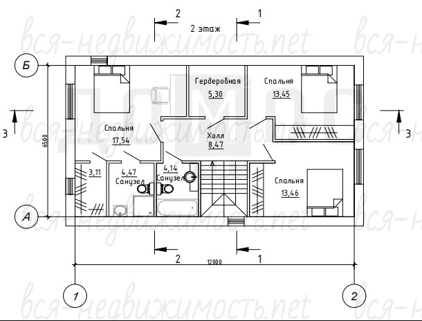 2й этаж - мастер спальня со своим санузлом и гардеробной.