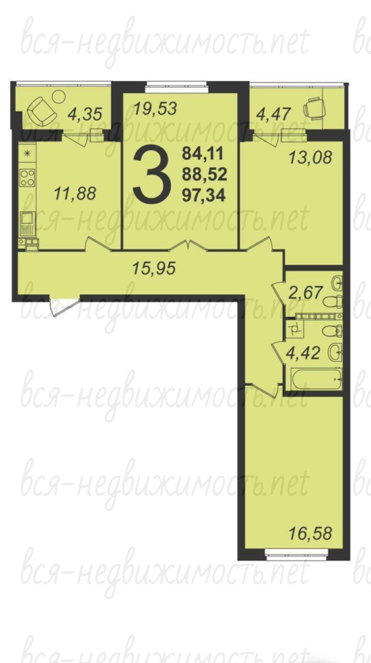 + две изолированные спальни. Два полноценных санузла.
