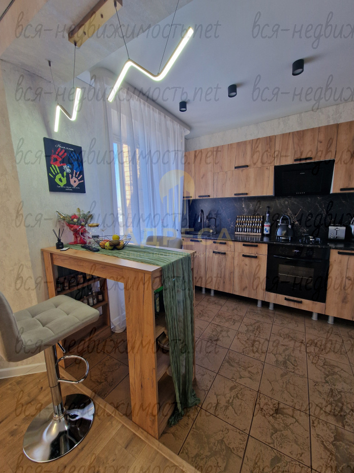 В квартире выполнен качественный ремонт из дорогих материалов, все комнаты изолированы, теплый пол, точечное освещение и натяжной потолок.