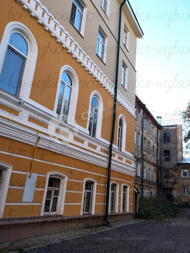 Комната площадью 24,3 кв.м., с высокими потолками, находится в 5-комнатной квартире. Окна выходят на театр "У моста".
