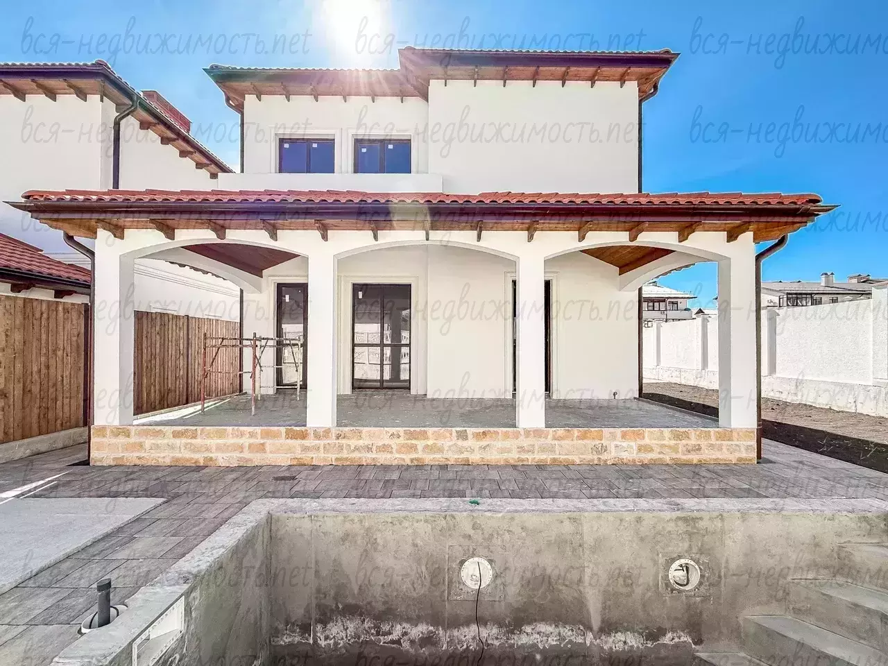 Выполнено благоустройство территории, бассейн, капитальный забор, откатные ворота, подключение коммуникаций, внутренняя штукатурка помещений.