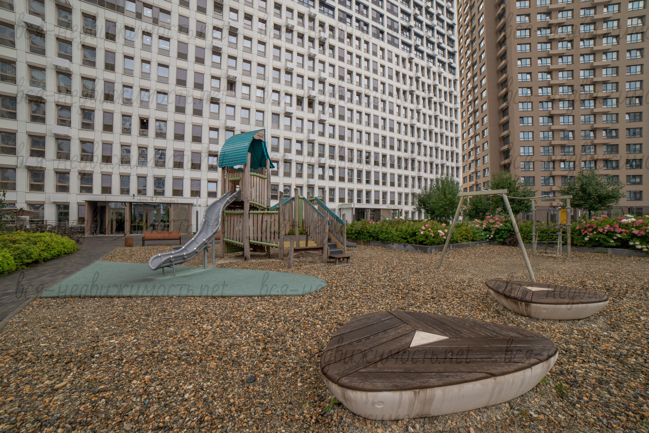 - Компаунд "Проспект Мира" флагманский проект компании "Первостроитель", это закрытый комплекс с развитой инфраструктурой, фонтаном, зонами отдыха, детскими площадками, спортивными зонами и двухуровневым паркингом;