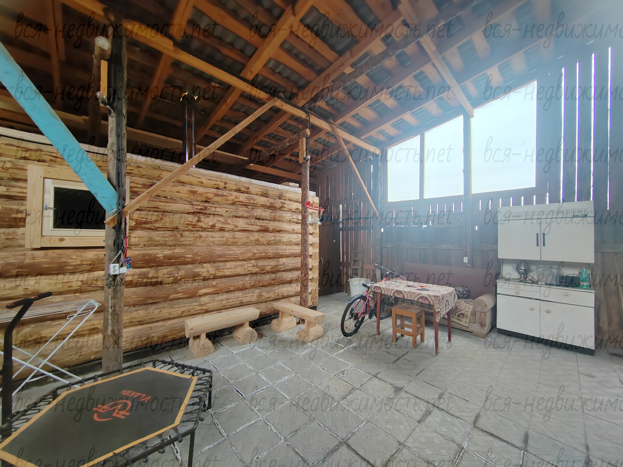 + Веранда полностью под крышей, и закрыта со всех сторон от ветра и дождя;