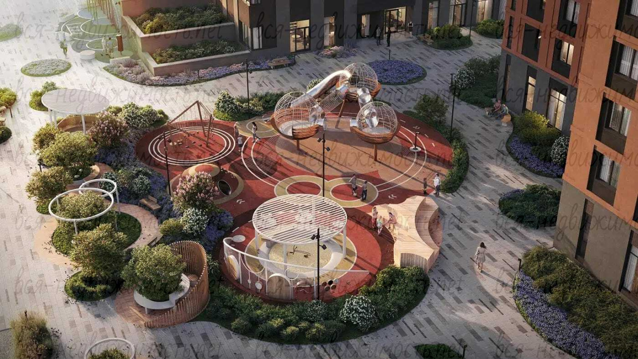 Предусмотрены детские игровые комнаты, колясочные и места для мойки лап собак. В холлах размещаются ресепшен, консьерж-службы и меблированные зоны ожидания. На территории двора будут открыты спортивные комплексы и детские площадки.