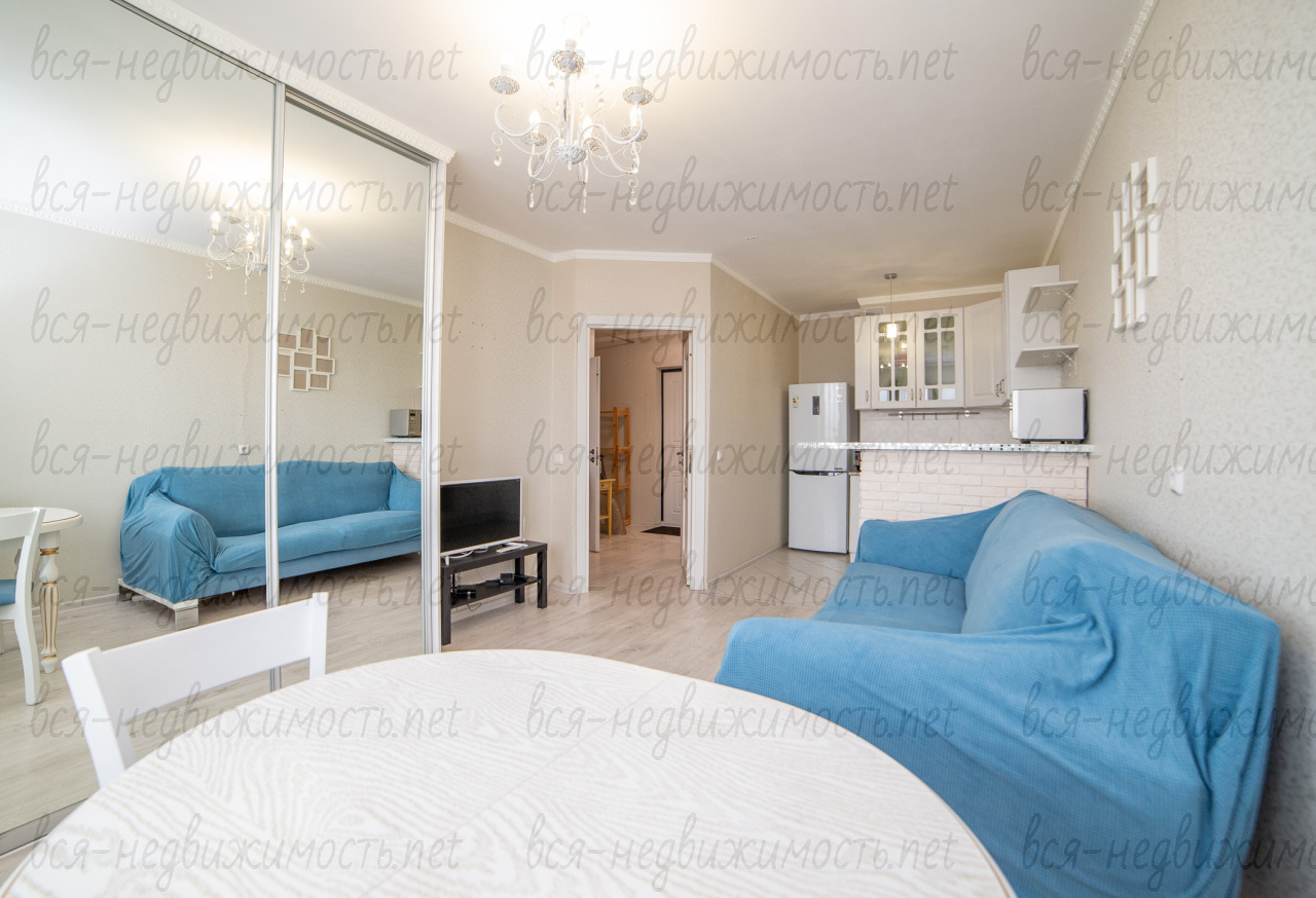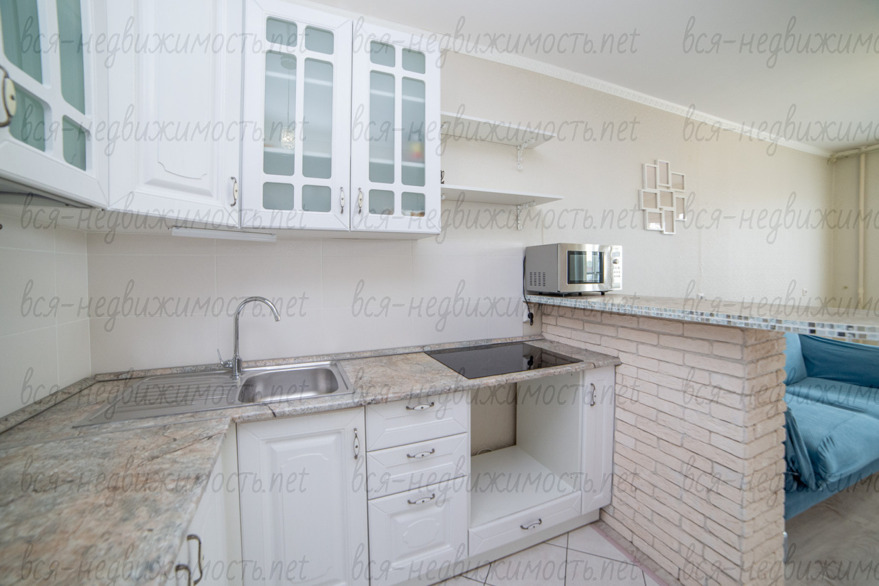 При продаже в квартире остается мебель и техника: кровать двухспальная, комод, стир.машина LG, два шкафа-купе с зеркалами, кухонный гарнитур, холодильник LG, варочная поверхность, стол, диван.