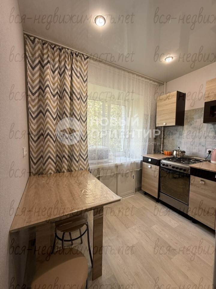 В квартире произведен косметический ремонт, установлены счетчики. Заменены окна на пластиковые стеклопакеты хорошего качества, на полу линолеум, стены - обои под покраску, поменяны межкомнатные двери, во всей квартире натяжные потолки. На кухне современный гарнитур цвета дерева, стол и табуреты, качественная газовая плита, холодильник, микроволновка. В большой комнате тумба под телевизор и диван, в спальне шкаф, в коридоре новая прихожая, стиральная машина (остаются покупателю). В квартире предусмотрена отдельная гардеробная, которая создает дополнительные места хранения. Балкон с выходом из большой камнаты, застеклен и обшит деревом.