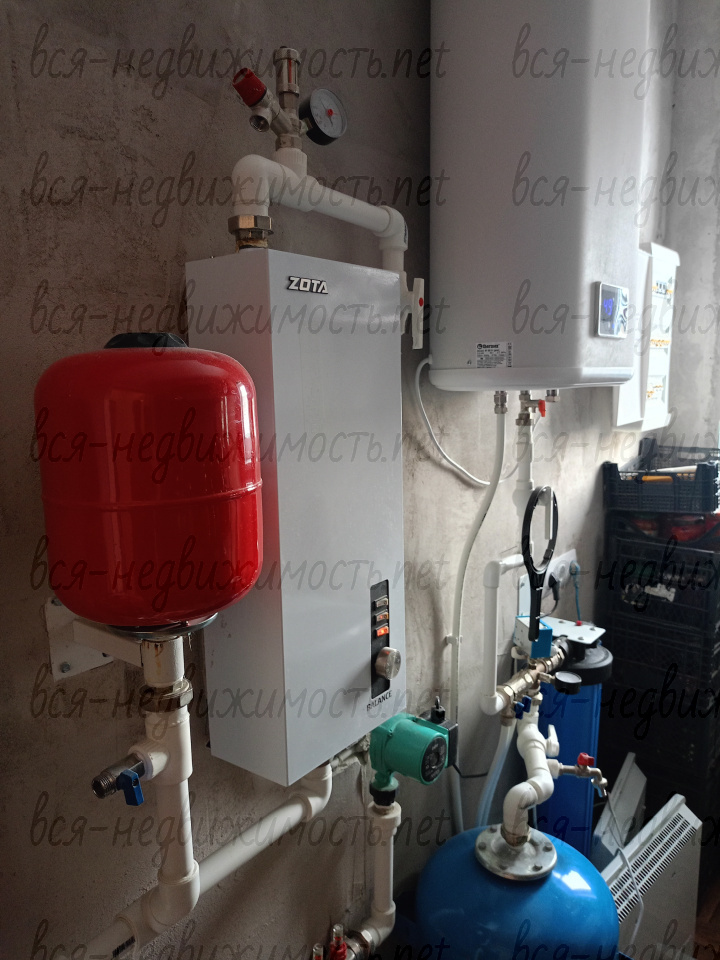 Коммуникации: электрокотел 9 кВт., отопление -выполнен по всему периметру теплый пол (использовались металло-пластиковые трубы), накопительный водонагреватель 80 л., заведены в дом: водоснабжение - скважина (55 метра) облагорожена (кессон) с греющим кабелем, канализация - выгребная яма (10м3), электричество 15кВт, вентиляция, кондиционер, магистральный газ рядом с поселком (догазификация 2027 г.), интернет «Интерсвязь», телевидение, камеры наружного наблюдения, наружное освещение.