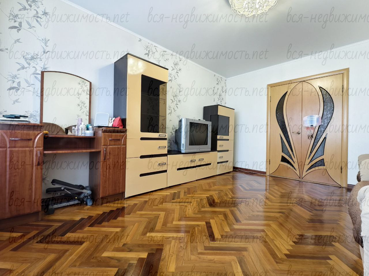 В квартире качественный косметический ремонт. На полу кафель и натуральный реставрированный паркет (полы не скрипят). Натяжные потолки. Ванная и туалет в кафеле. Новым собственникам остается кухонный гарнитур с духовым шкафом, варочной поверхностью и вытяжкой, очень большой и вместительный шкаф-купе в прихожей и стенка в гостинной.