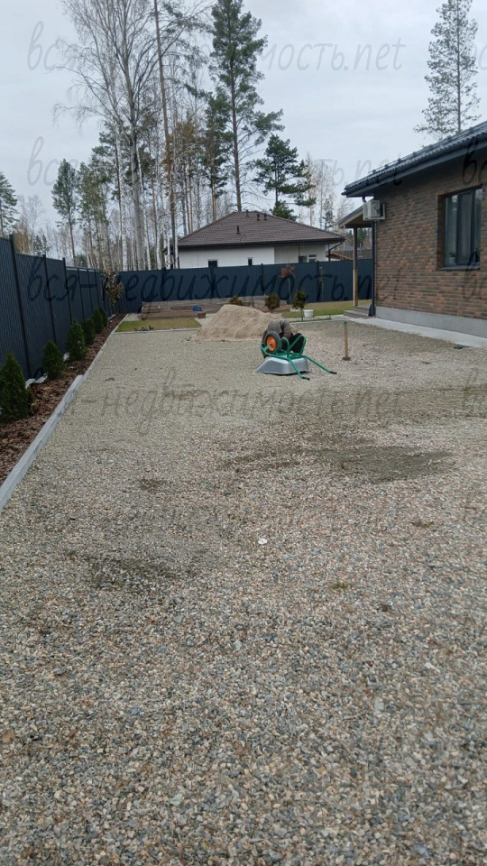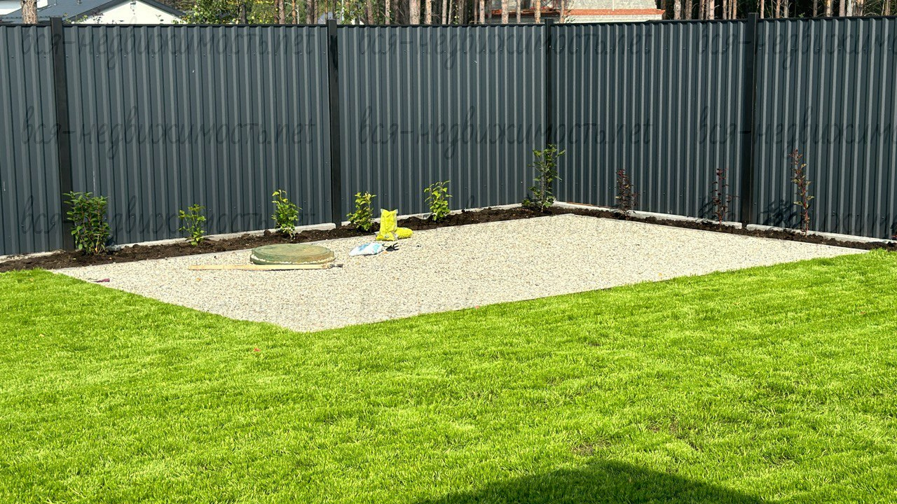 Вдоль участка обустроен пешеходный тротуар. Среда продумана для спокойной и приватной жизни.