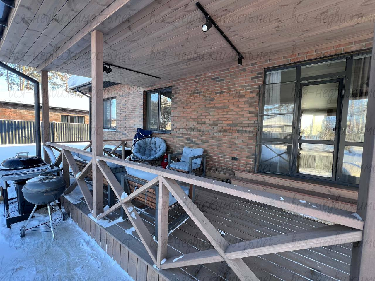 Просторная терраса и организованная зона барбекю — комфортное пространство для отдыха и приёма гостей.