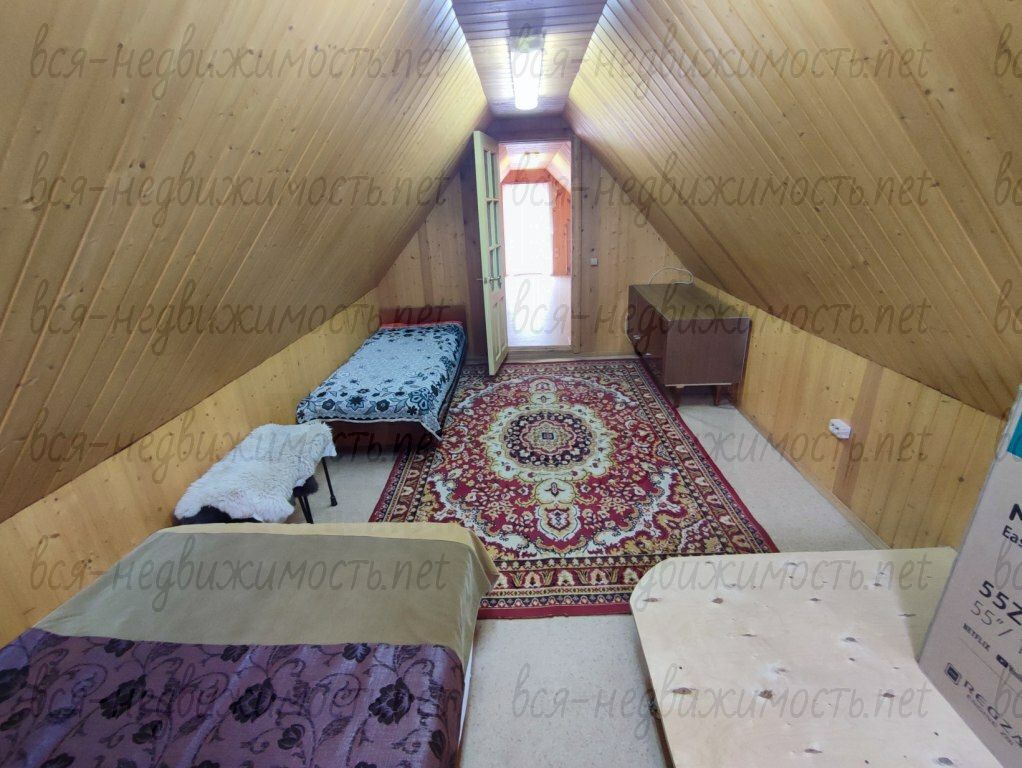 Дом 3 комнаты (кухня-гостиная и две комнаты). Два этажа. 100 кв.м. На втором этаже четыре кладовки. Половина дома сделана из шлакоблока, сверху утеплитель 80мм, вторая половина - каркасная, утеплитель 80 мм. По факту дом можно сделать круглогодичным для проживания. Дом полностью отделан вагонкой.
