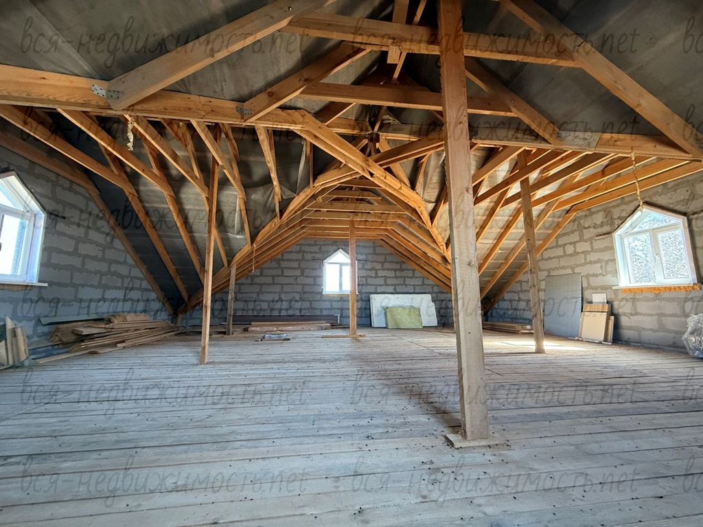 В доме два этажа и огромный мансардный этаж. Материал стен твинблок и блокхаус. Фундамент ленточный. Внутренняя отделка - имитация бруса. Высота потолков 2,80 м. На первом этаже расположены 2 комнаты, просторная кухня (встроенная техника и гарнитур), санузел и котельная. На втором этаже 4 изолированные комнаты с большой лоджией и санузел. Для комфорта проживания мы сделали теплый водяной пол. Установлен электрический котел, бойлер на 100 литров. Своя скважина на 70 метров с артезианской водой, септик. Также на участке построен банька 24 кв.м., в ней практически финальная отделка. Участок 11 соток в собственности.