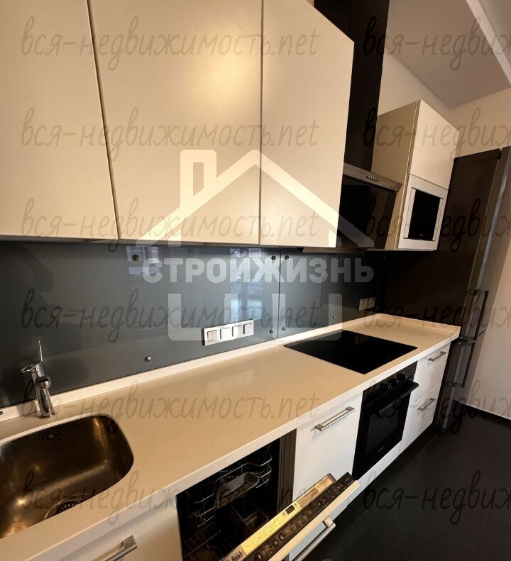 Оставляем качественный кухонный гарнитур с каменной столешницей, всю мебель и технику: ПММ, духовой шкаф, СВЧ, холодильник — заезжай и живи.