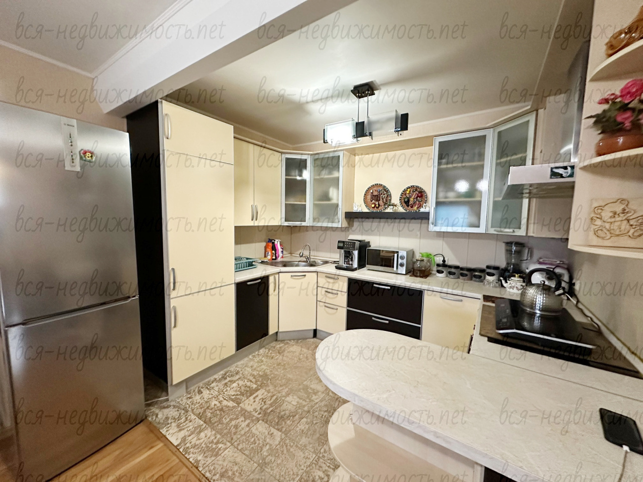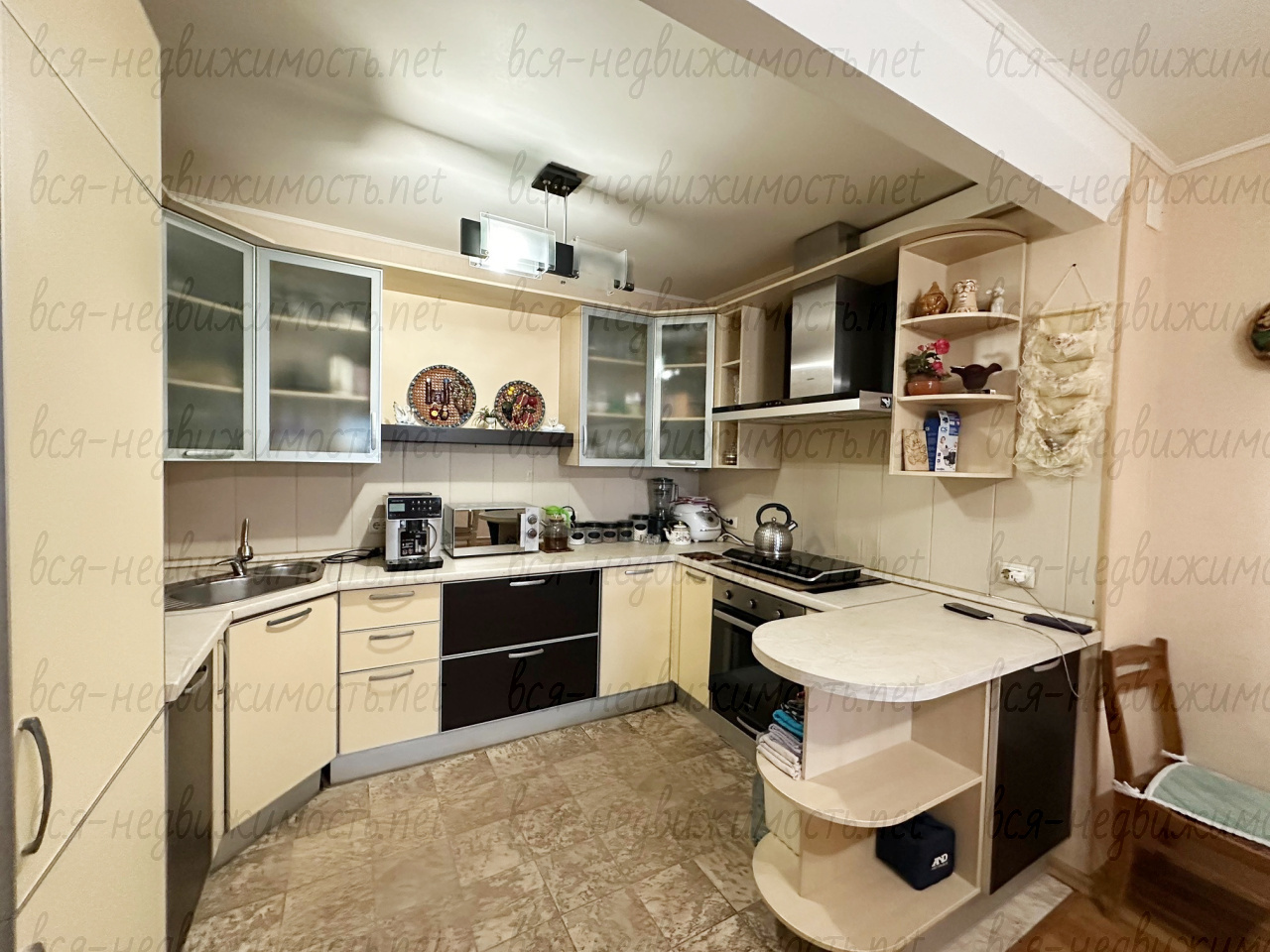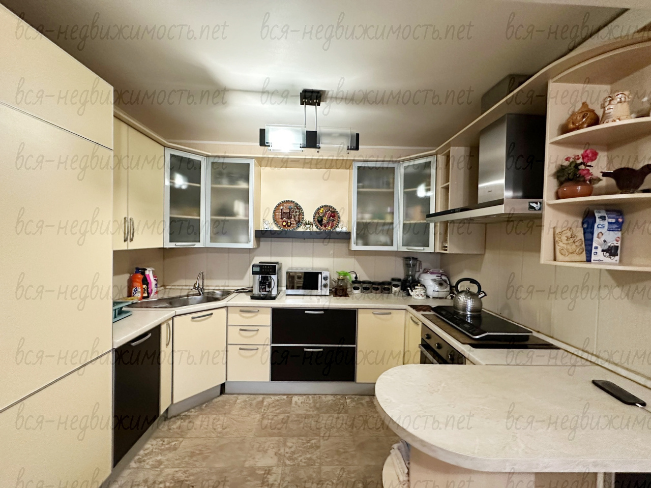 Просторная кухня и коридоры, очень высокие потолки создают ощущение воздушности и легкости, очень удобная лестница. При продаже остается кухонный гарнитур.