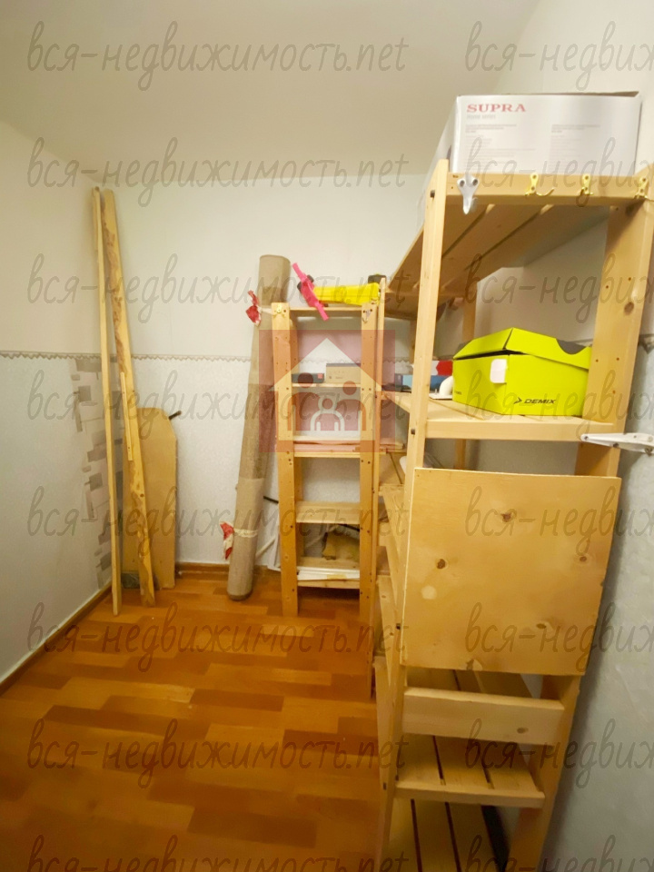 В квартире имеется просторная гардеробная, оборудованная стеллажами для хранения вещей (по желанию можно сделать рабочим кабинетом или дополнительной комнатой для проживания).