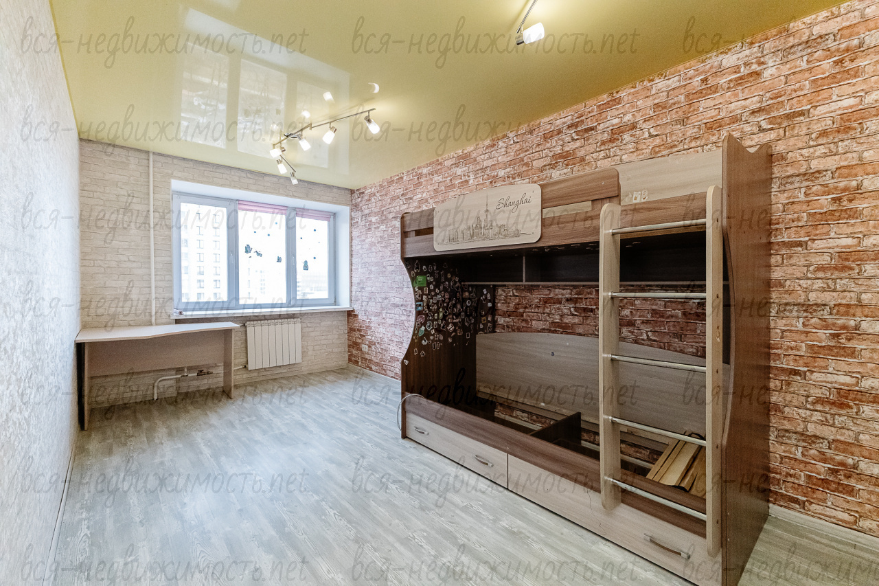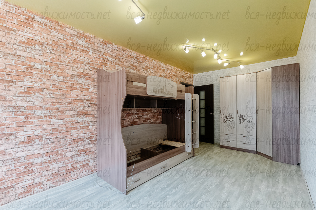 Мебели в комнатах практически нет, при необходимости готовы вывезти оставшуюся двухъярусную детскую кровать. Состояние квартиры такое, что можно сразу заезжать после покупки. Либо провести только косметический ремонт, объёмных работ не требуется.