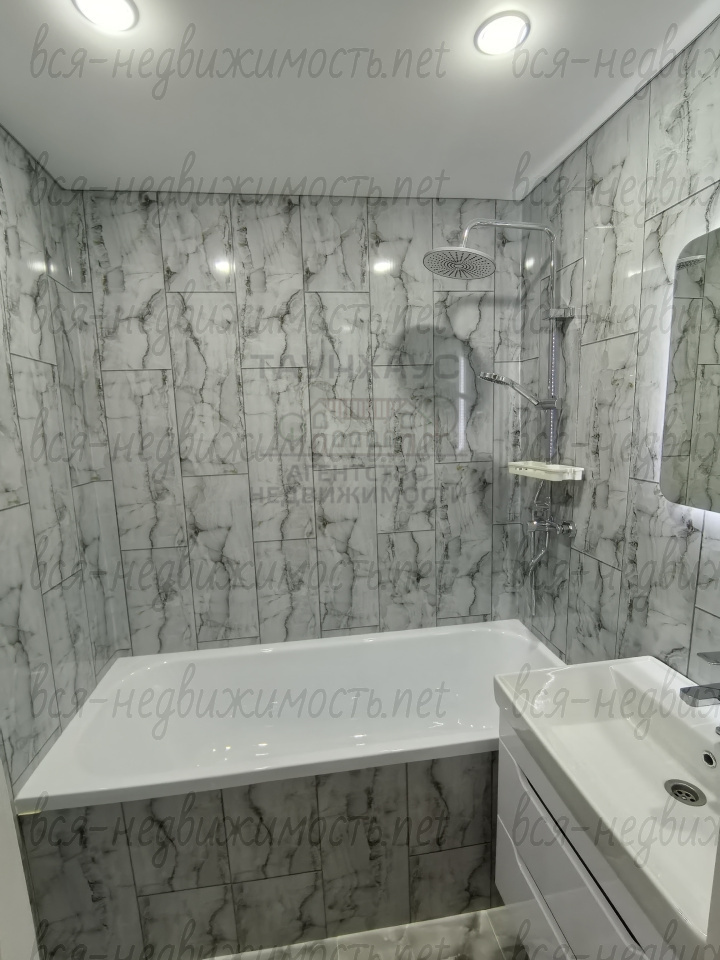 - новая сантехника, ванна (тропический душ), раковина, зеркало с подсветкой