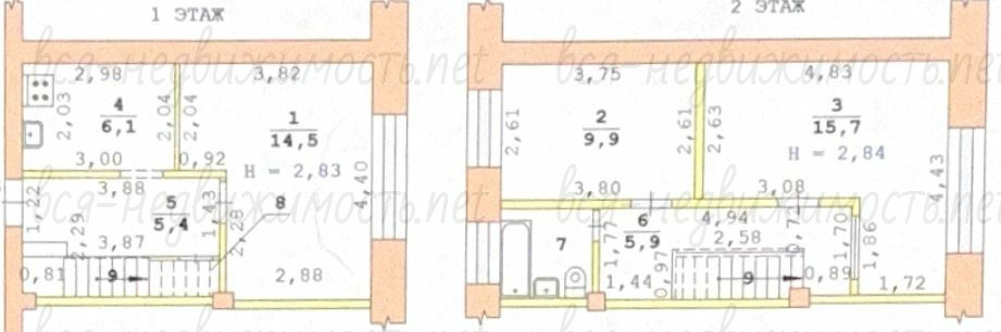 КВАРТИРА: расположена на 1-2 этаже 6-ти этажного дома. На 1-ом этаже расположена гостиная и кухня, на 2-ом этаже две спальни и совмещенный санузел с окном.