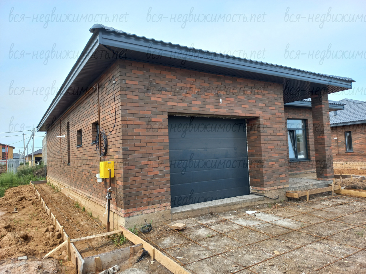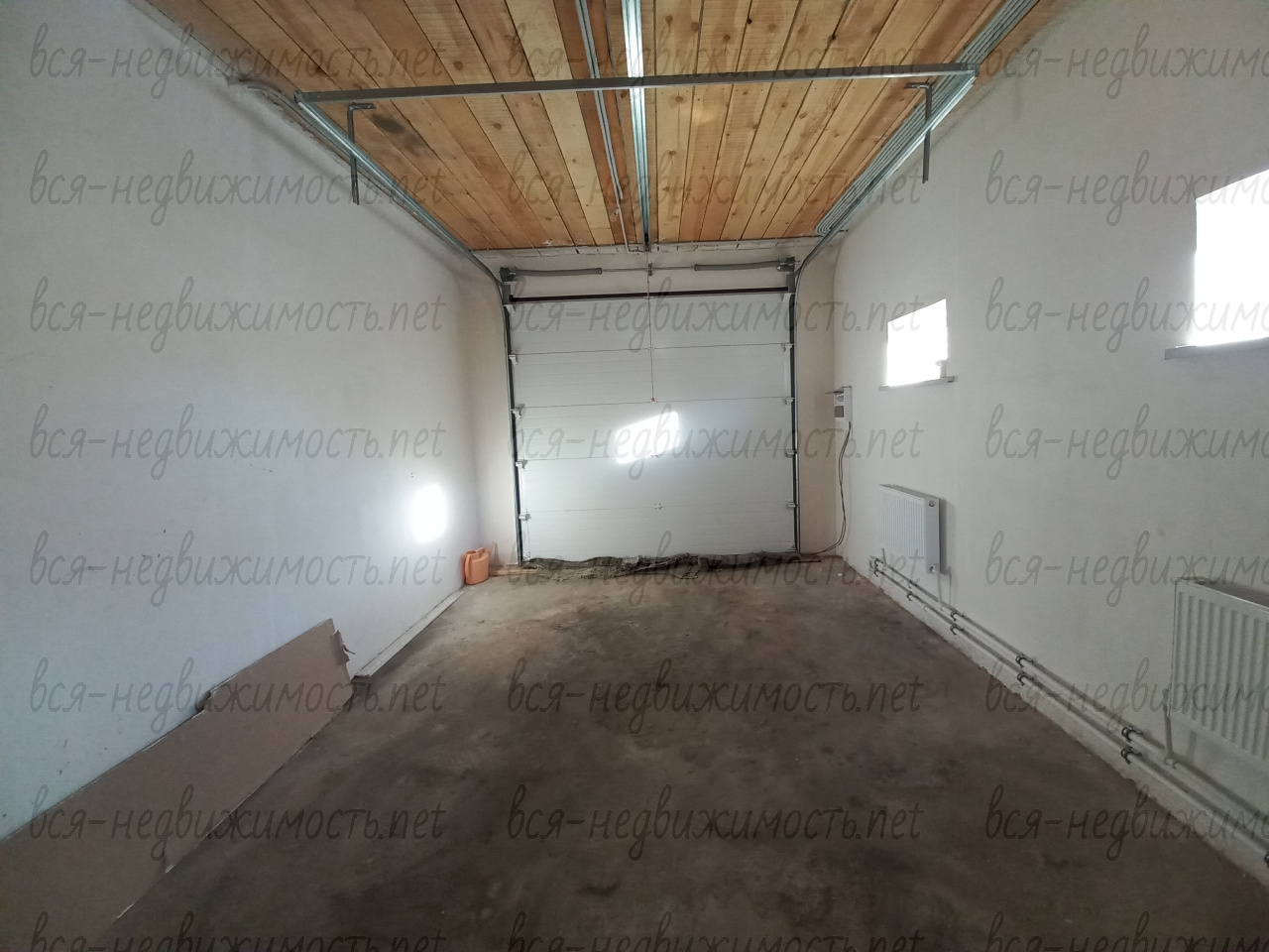 Гараж (перед гаражом забетонировано парковочное место) с автоматическими воротами DoorHan, в котором выполнена предчистовая отделка и установлены радиаторы отопления.